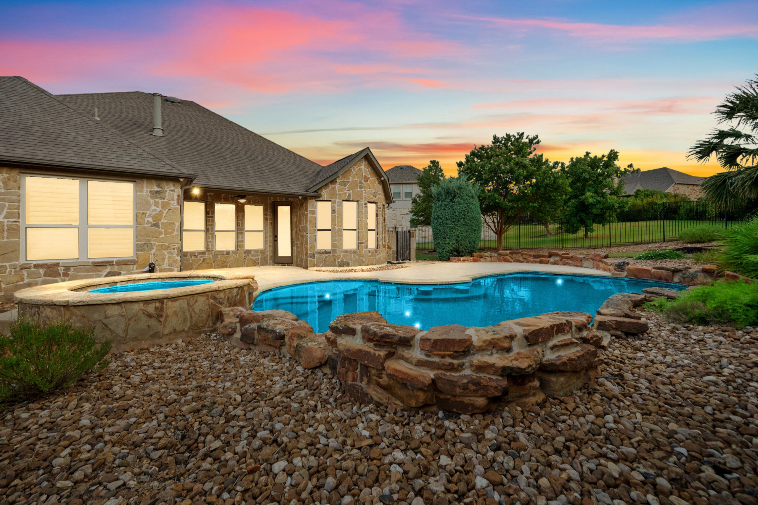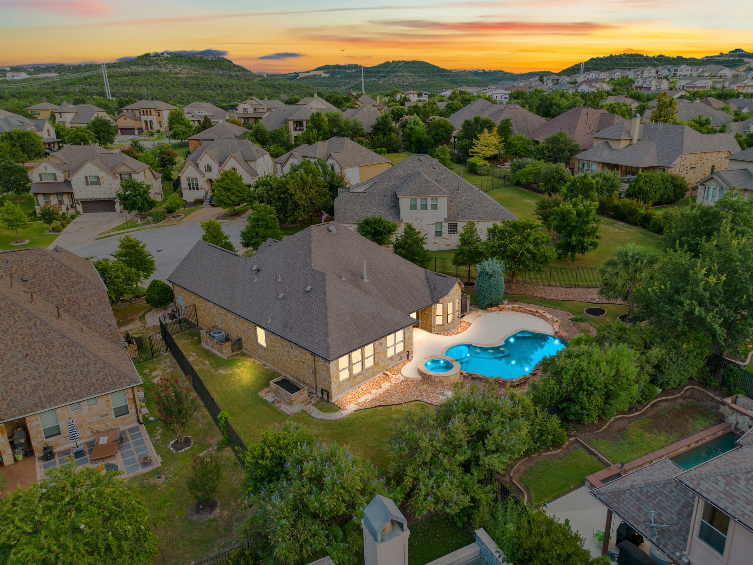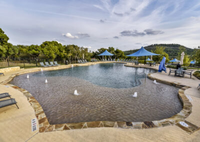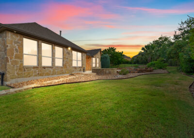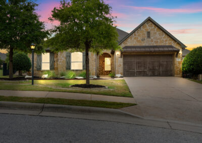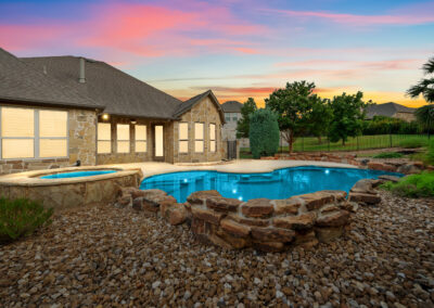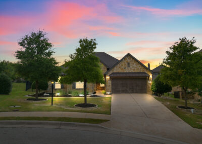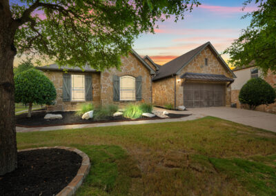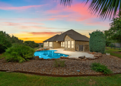 Welcome home to hill country living at Rough Hollow on the South shore of Lake Travis. As one of the more popular floor plans from Lennar Homes, you’ll enjoy everyday living just as much as entertaining. Fantastic open floor plan starts at the foyer from the arched dining room, flows into the living and stone fireplace in the center then finishes at the kitchen and breakfast room. Unique features include hardwood floors, plantation shutters and stone accents throughout. The amazing custom kitchen features a raised breakfast bar with seating for 3, granite counters, stainless appliances, and a gas cooktop in a stone alcove. It’s easy to work from home in the study at the private hall to the primary bedroom. Tranquil owner’s suite with tray ceiling, oversized vanities, walk in shower and soaking tub. There’s lots of room to play and relax out back at the patio, pool, spa, wrap around yard and even a raised garden bed for fresh herbs.