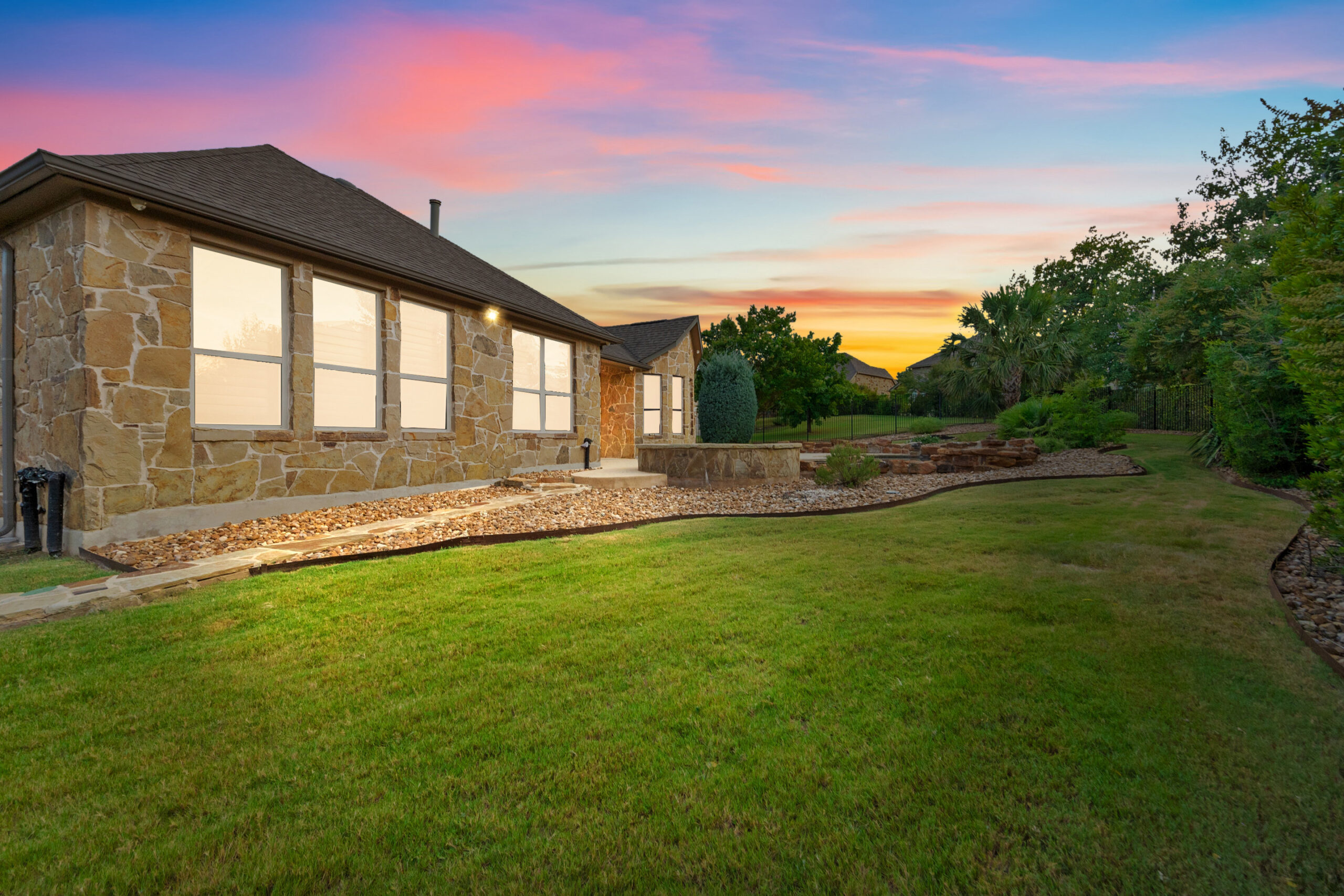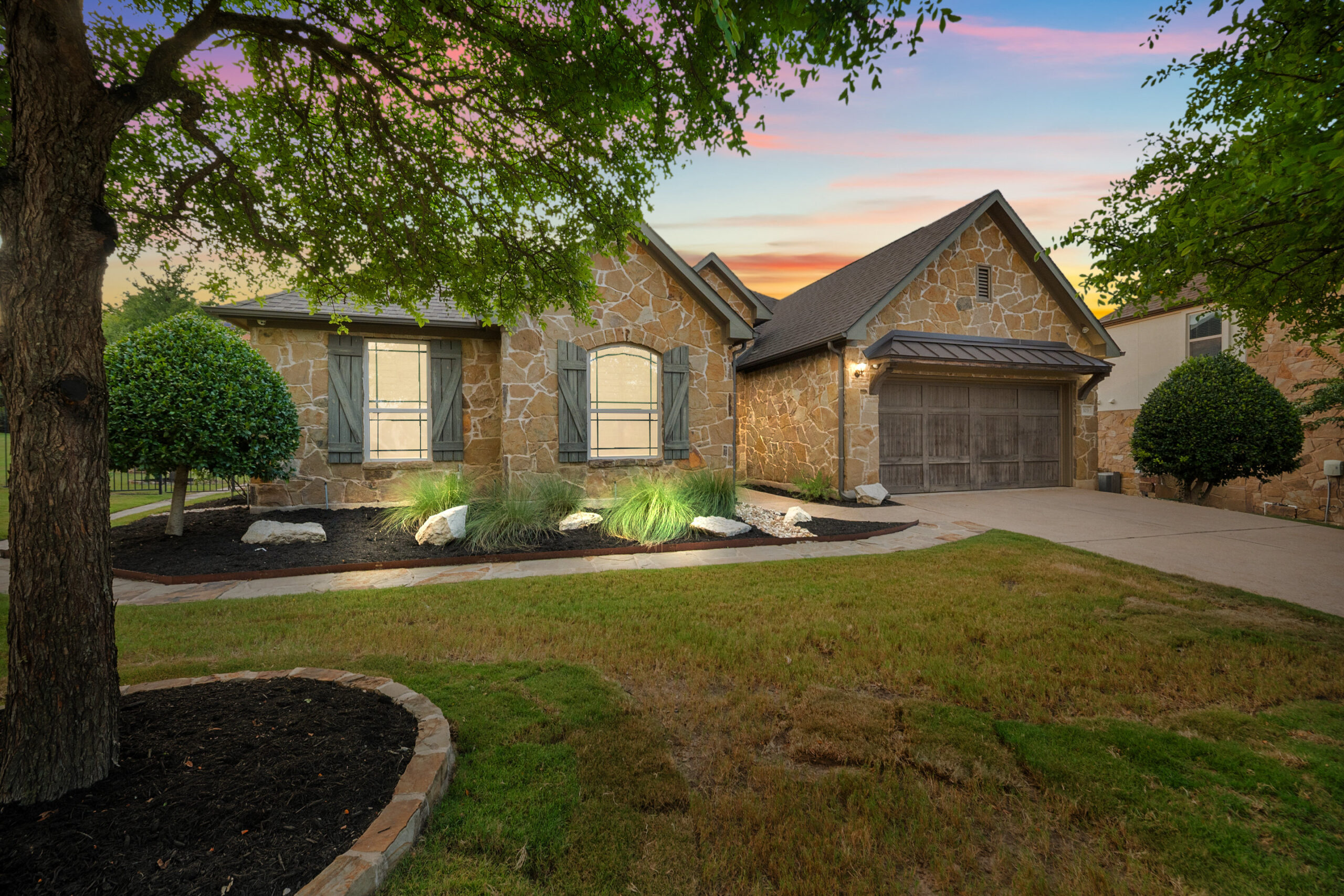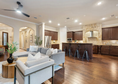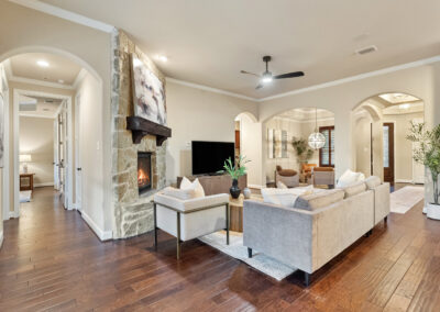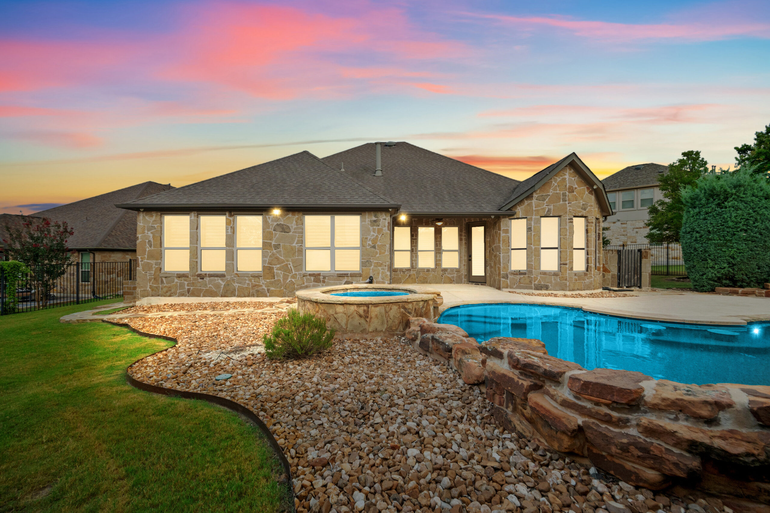Welcome home to hill country living at Rough Hollow on the South shore of Lake Travis. As one of the more popular floor plans from Lennar Homes, you’ll enjoy everyday living just as much as entertaining. Fantastic open floor plan starts at the foyer from the arched dining room, flows into the living and stone fireplace in the center then finishes at the kitchen and breakfast room. Unique features include hardwood floors, plantation shutters and stone accents throughout. The amazing custom kitchen features a raised breakfast bar with seating for 3, granite counters, stainless appliances, and a gas cooktop in a stone alcove. It’s easy to work from home in the study at the private hall to the primary bedroom. Tranquil owner’s suite with tray ceiling, oversized vanities, walk in shower and soaking tub. There’s lots of room to play and relax out back at the patio, pool, spa, wrap around yard and even a raised garden bed for fresh herbs.