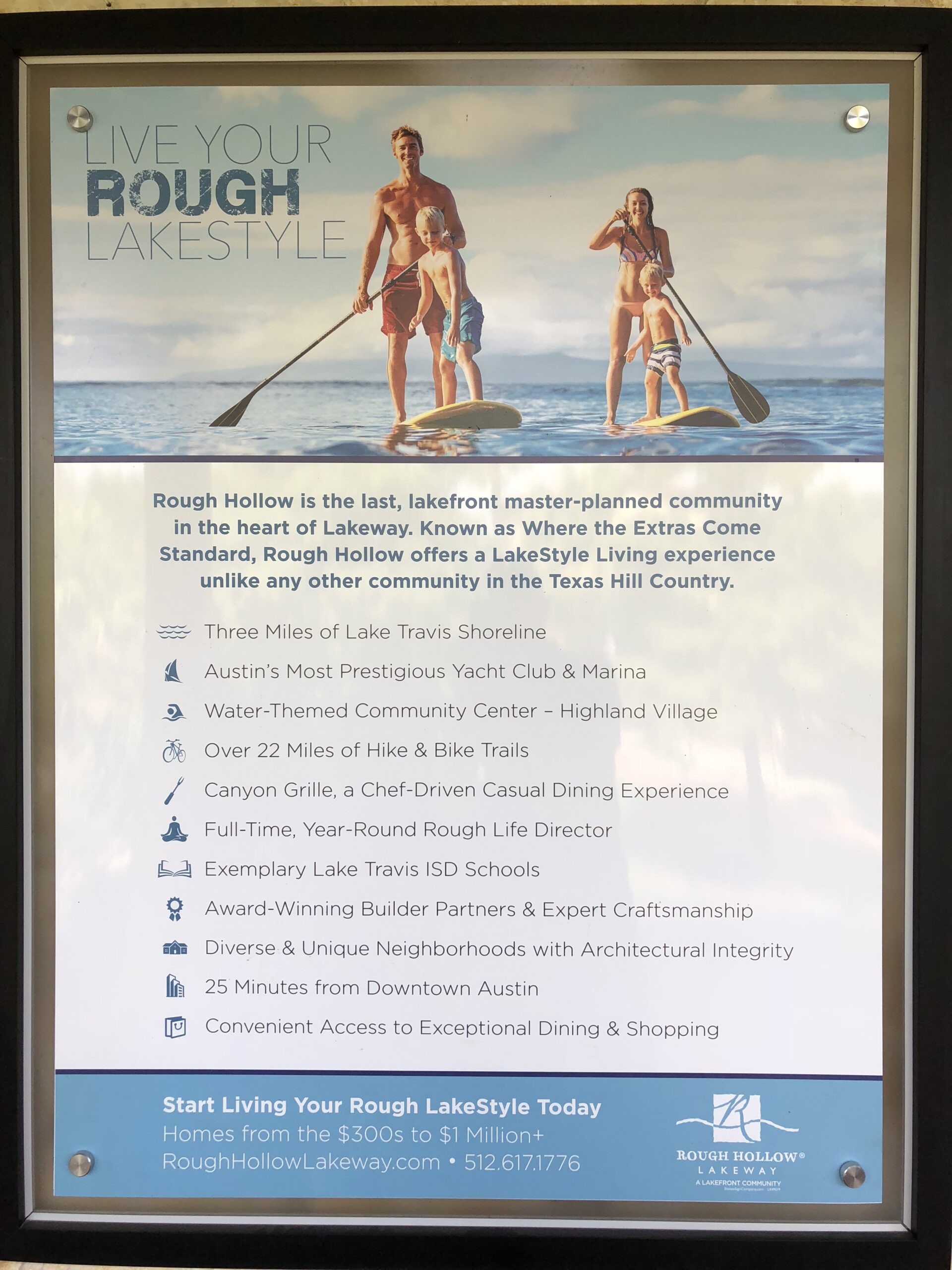 The location is just 30 minutes from downtown Austin you will find Rough Hollow – a resort style community on the prestigious South shore of Lake Travis. Featuring direct lake access, breathtaking Hill Country views and world-class amenities such as the Rough Hollow Yacht Club and Marina (Mandatory $91/month on top of the $850 semi-annual HOA fee), Canyon Grille, miles of hike and bike trails, luxurious pools, gym, pavilion & Highland Village: a water-themed amenities center. Rough Hollow offers an unparalleled lakeside lifestyle close to dining, shopping, golf & tennis. It’s all here waiting for you to come live the “Rough Life.