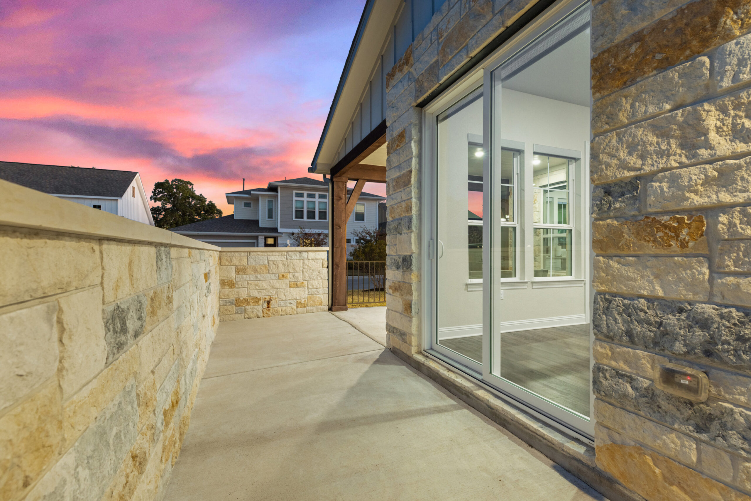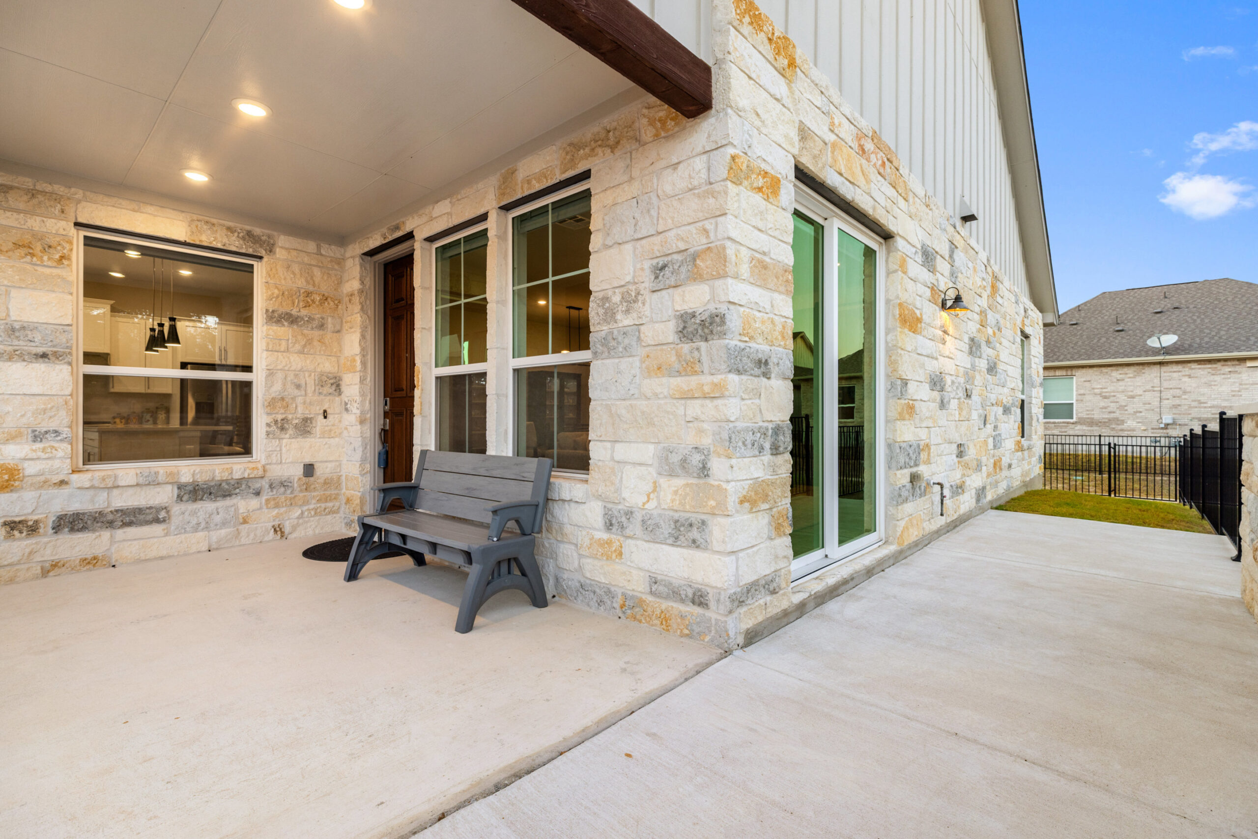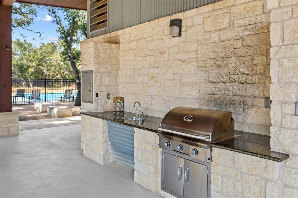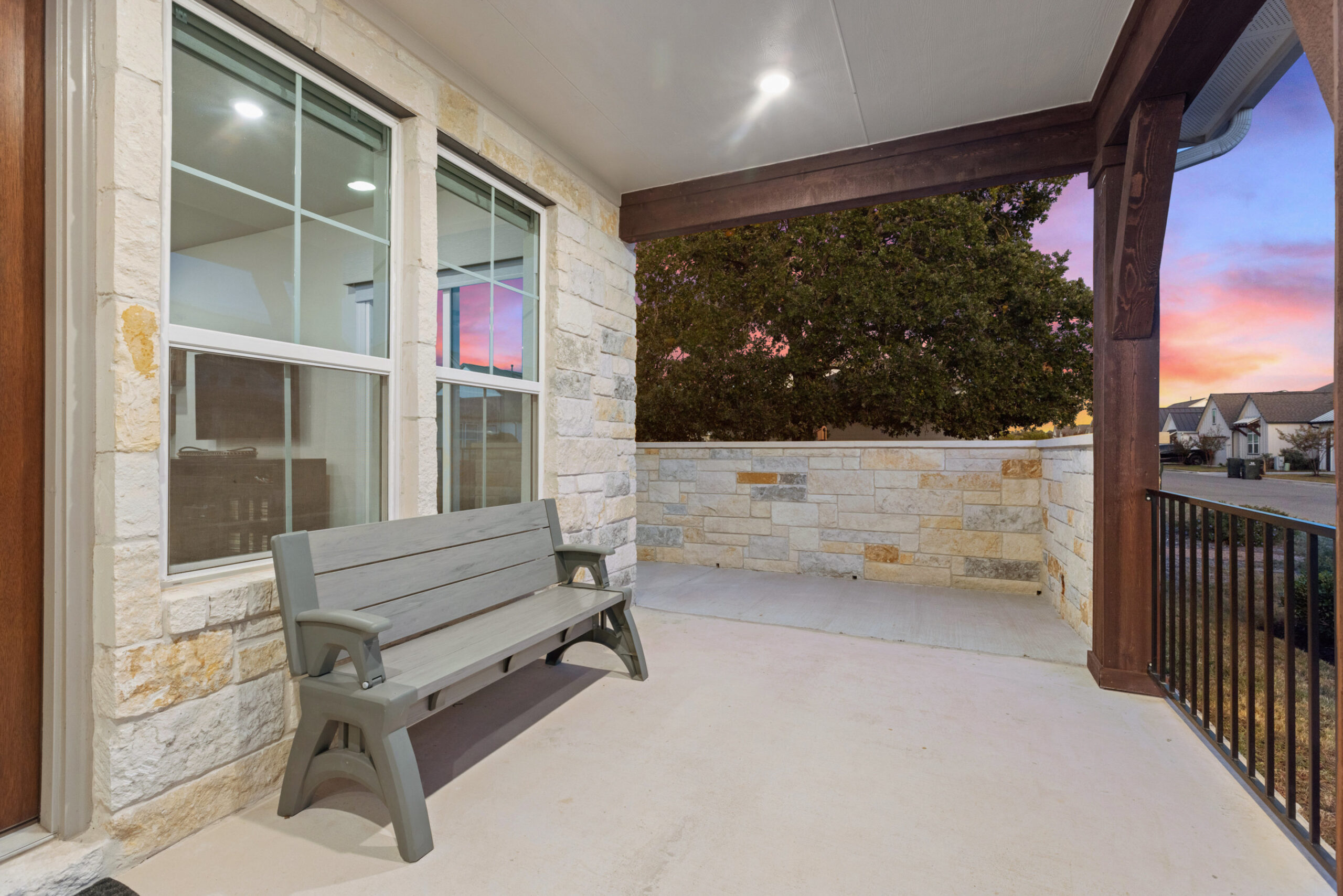 Welcome home to gated living in The Retreat at Dripping Springs. Built in 2021 by Brookfield, this modern farmhouse style detached condo is sure to please: 1,955+/-sq.ft., 3 bed, 2.5 bath, 2 live, 1 dine, 2 car garage luxurious finishes throughout. A unique locale next to the park lends to added privacy. The covered front porch entry provides a wraparound patio with stone half wall, gas stub out for a grill + a fenced in back yard for pets. Step inside to find a tranquil open floor plan awash in natural light. The living, dining and kitchen are spacious rooms under tall ceilings – perfect for the holidays and entertaining. The ceiling space even continues into the garage offering ample storage. All appliances convey including the fridge washer & dryer making for a true turn key opportunity. The gorgeous kitchen has been upgraded with tile backsplash, waterfall counter at the island, water softener plus LVP flooring throughout this amazing home. Comfortable live/work in the study with custom barn doors, huge closet and a one of a kind view. The bedrooms are spacious and the primary boasts a stunning walk in shower, dual vanities, and huge walk in closet. The community only has 70 homes sharing a beautiful pool with tanning ledge, spa & lounge chairs plus a dining pavilion with grill, firepit & restrooms. Excellent locale with short walks to DSHS & downtown. Come enjoy easy living in this little hill country secret close to it all. Its here waiting for you to call it “Home.”