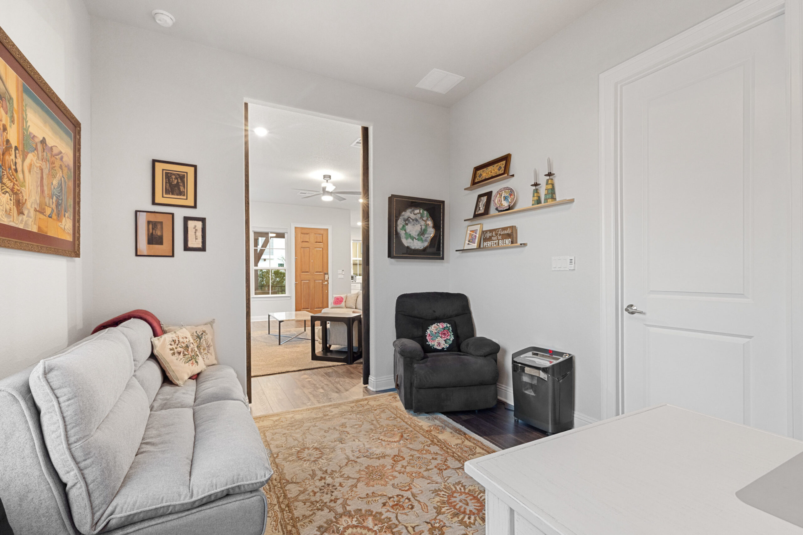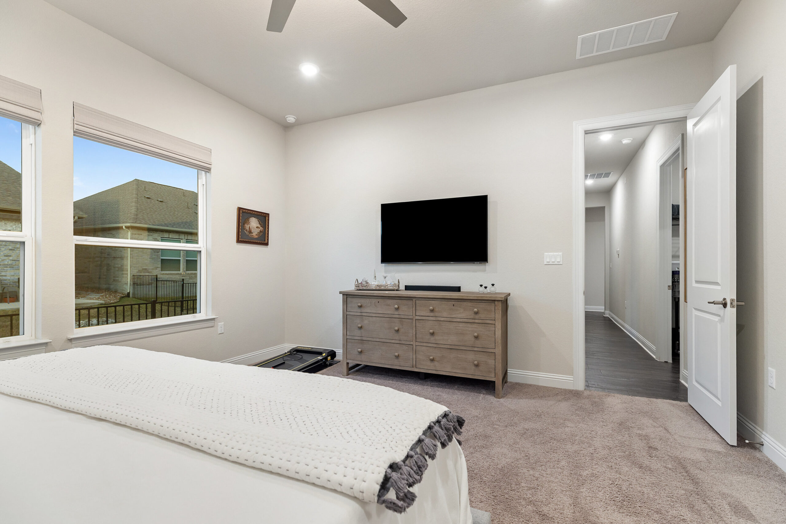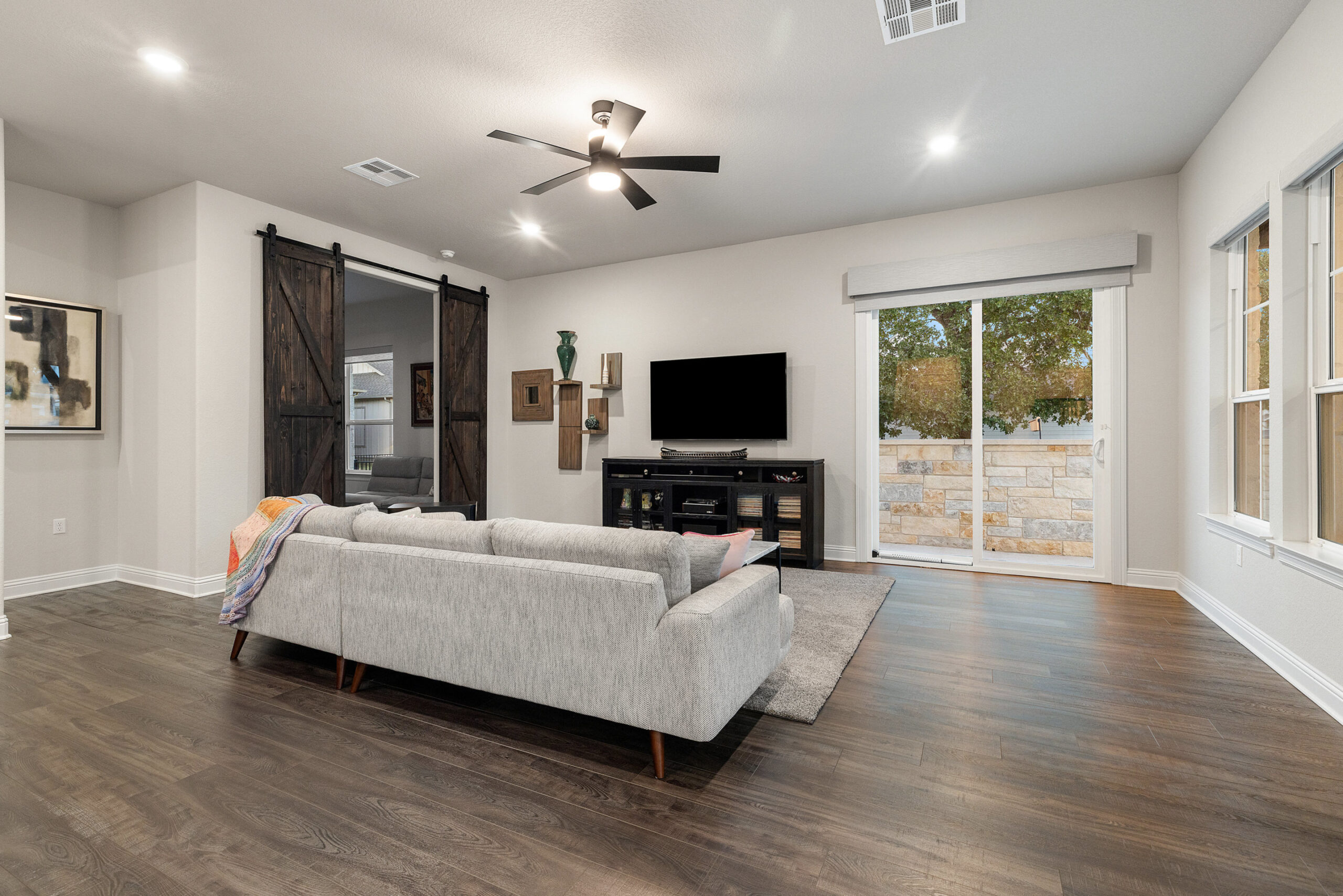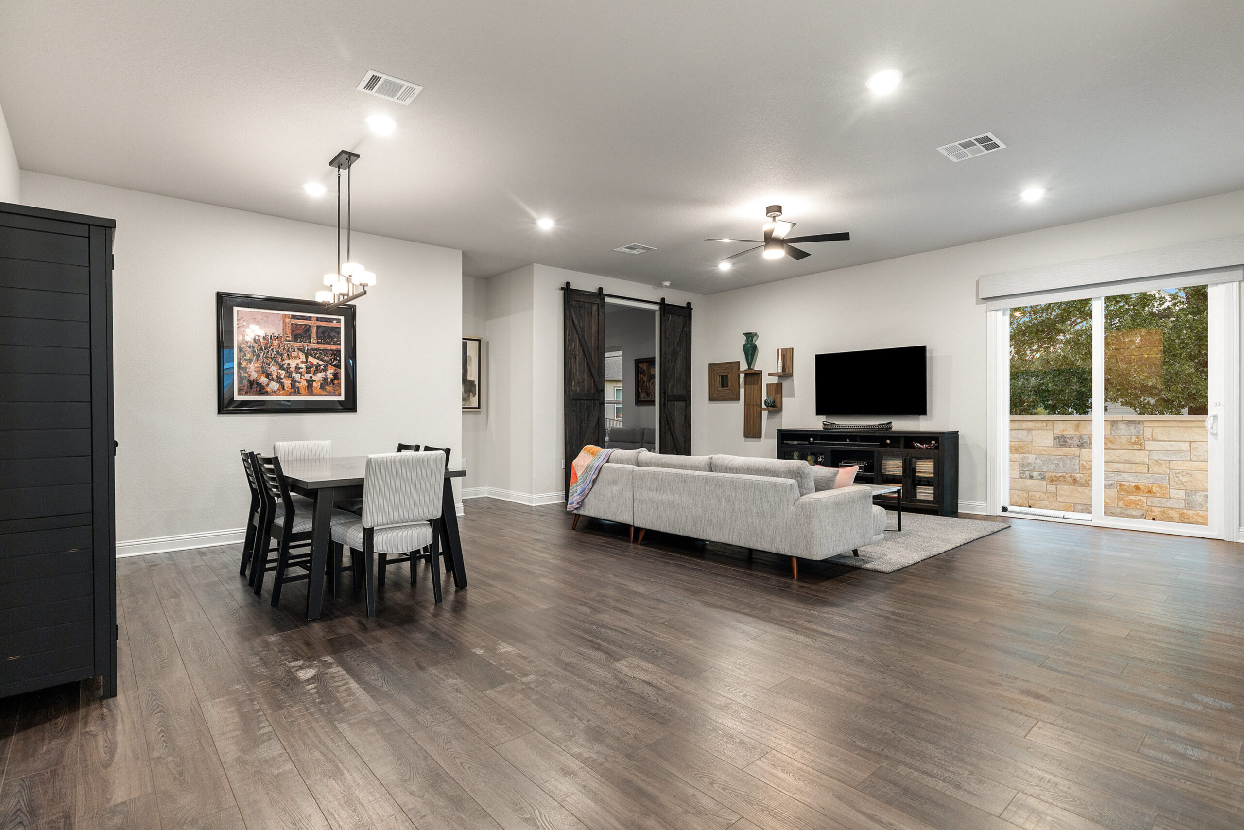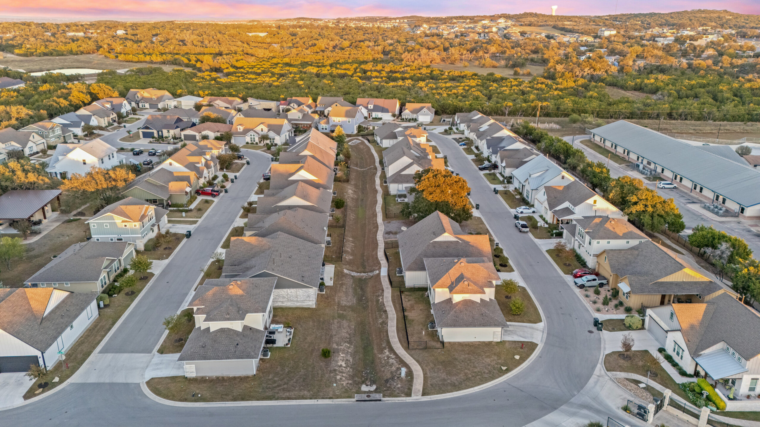 Welcome home to gated living in The Retreat at Dripping Springs. Built in 2021 by Brookfield, this modern farmhouse style detached condo is sure to please: 1,955+/-sq.ft., 3 bed, 2.5 bath, 2 live, 1 dine, 2 car garage luxurious finishes throughout. A unique locale next to the park lends to added privacy. The covered front porch entry provides a wraparound patio with stone half wall, gas stub out for a grill + a fenced in back yard for pets. Step inside to find a tranquil open floor plan awash in natural light. The living, dining and kitchen are spacious rooms under tall ceilings – perfect for the holidays and entertaining. The ceiling space even continues into the garage offering ample storage. All appliances convey including the fridge washer & dryer making for a true turn key opportunity. The gorgeous kitchen has been upgraded with tile backsplash, waterfall counter at the island, water softener plus LVP flooring throughout this amazing home. Comfortable live/work in the study with custom barn doors, huge closet and a one of a kind view. The bedrooms are spacious and the primary boasts a stunning walk in shower, dual vanities, and huge walk in closet. The community only has 70 homes sharing a beautiful pool with tanning ledge, spa & lounge chairs plus a dining pavilion with grill, firepit & restrooms. Excellent locale with short walks to DSHS & downtown. Come enjoy easy living in this little hill country secret close to it all. Its here waiting for you to call it “Home.”