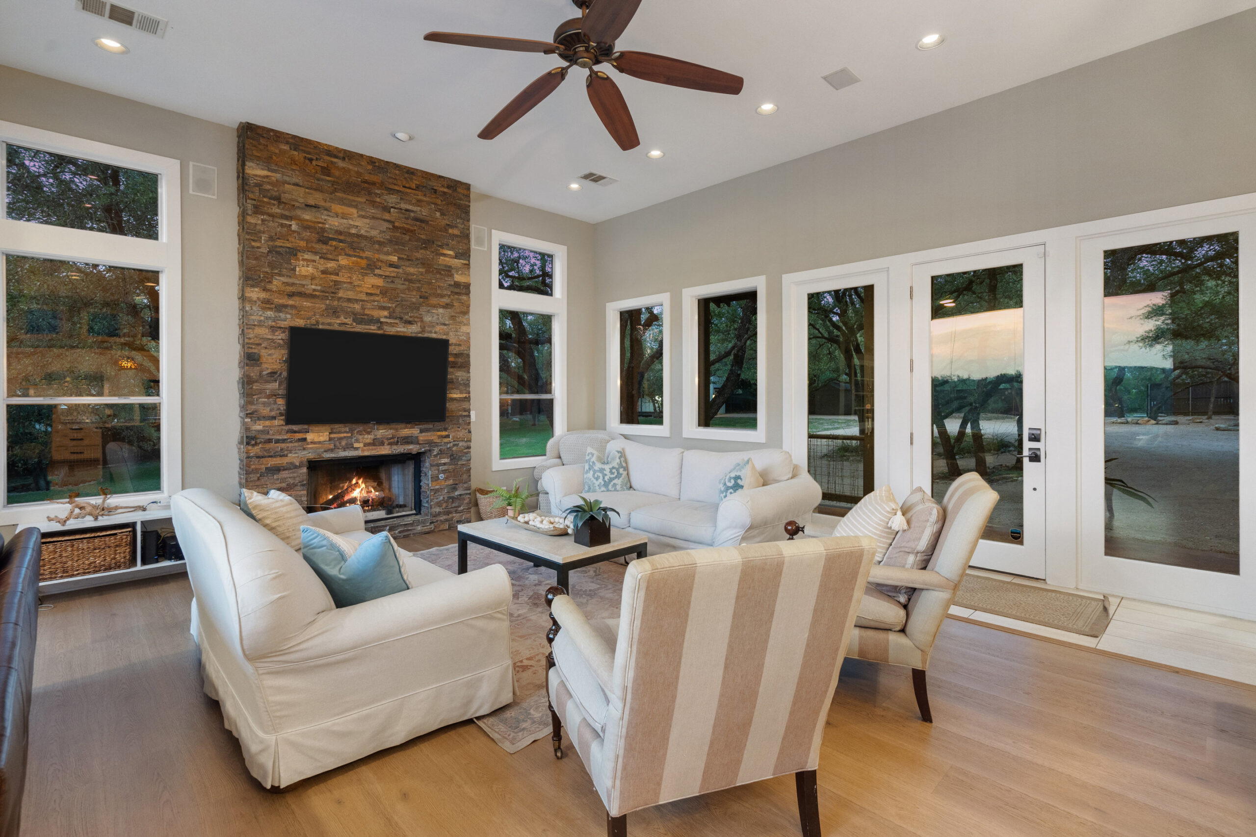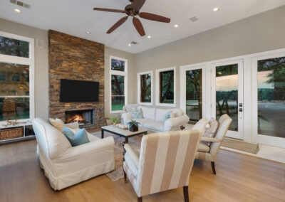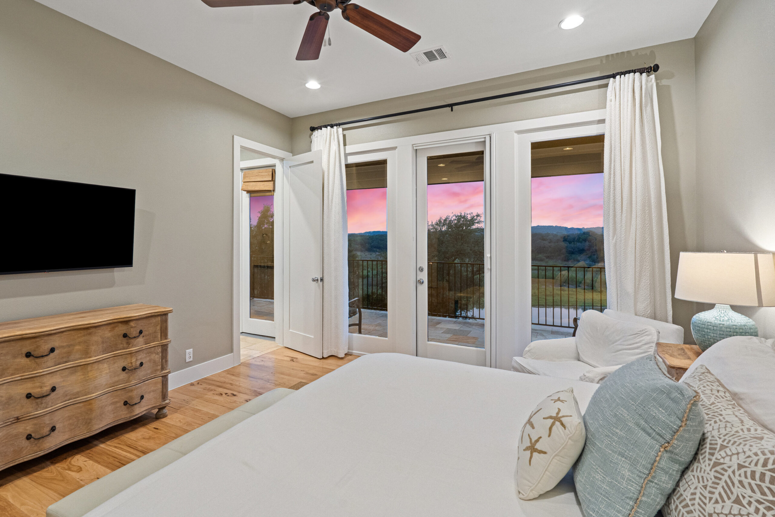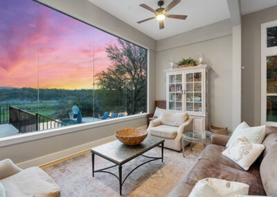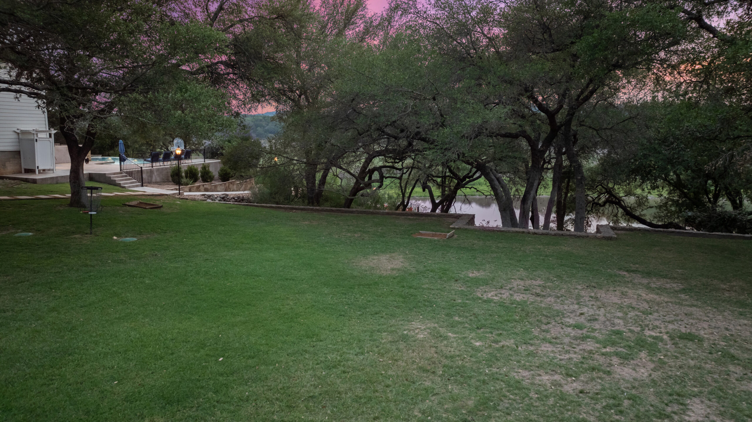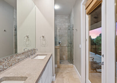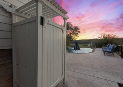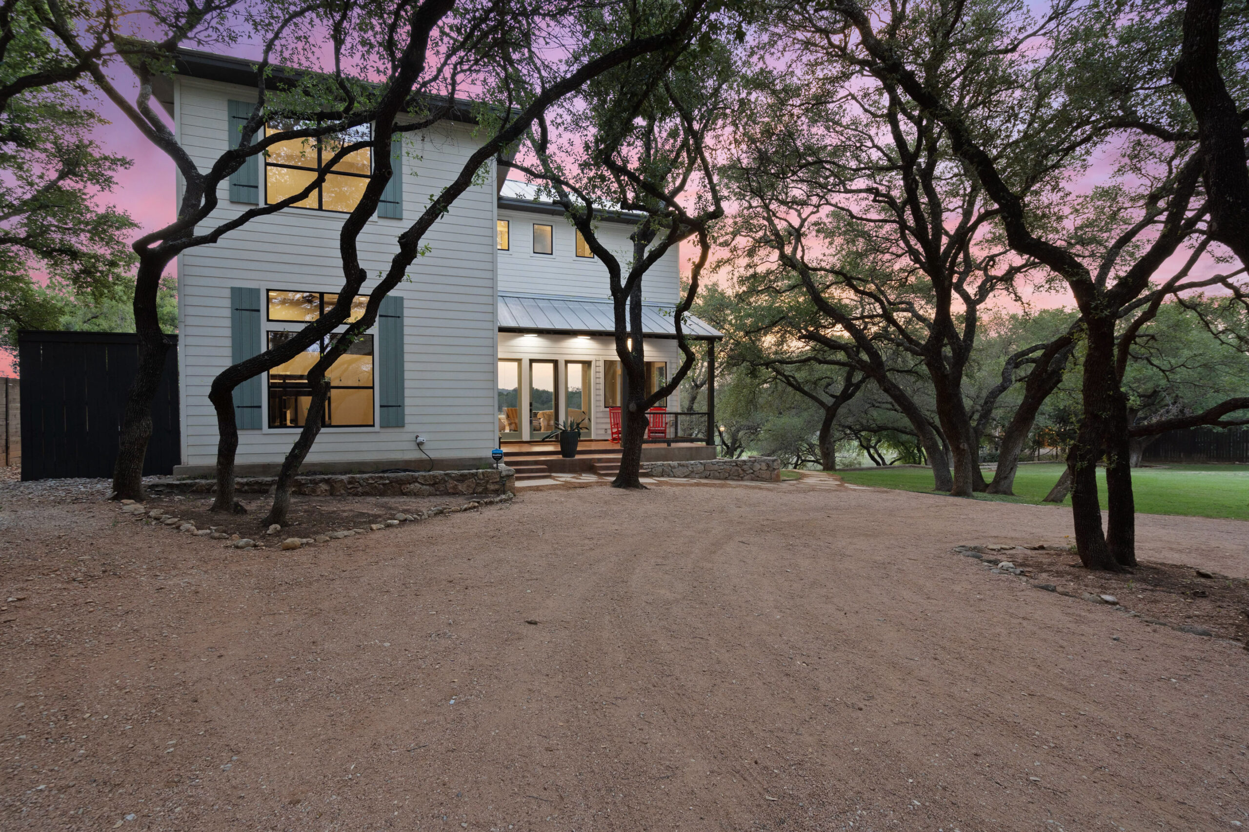 Welcome home to gated waterfront living at Pedernales Bend. The locale is the famous Texas Hill Country where relaxed lake lifestyles are celebrated. Perched over the Pedernales River on an open 1.669 acre lot, this property takes full advantage of its locale. Start your visit at the wide rollaway gate to find a sweeping tree canopy shading the circular drive at the main house. Inside you will find 2,540+/-sq.ft. with an open floor plan, a fireplace, 2 living rooms, dining, and kitchen. Also on this level is the bunk room with loft, a full bath plus the laundry room. Upstairs is 3 bedrooms and 2 baths plus an expansive covered balcony to soak up the sunset views. Relax and play at the pool featuring a spa and custom water slide. Enjoy your evenings around the firepit and gaze at the stars. Continue down the staircase to the boat dock with trapeze swing, storage, boat life and double jet ski lift for days of fun in the sun on Lake Travis. The community boat ramp is just to the north of the property near the RV storage with hookups that is outside the fence but still on the property. Additionally, the 2 story guest house offers 709+/-sq.ft. with 3 beds, 2 baths and a living room. A large portion of the yard is open for enjoying disc golf, tree swing and summer games. Currently used as an Airbnb, this income producing property it the perfect setting for friends and family to get together to make memories for a lifetime.