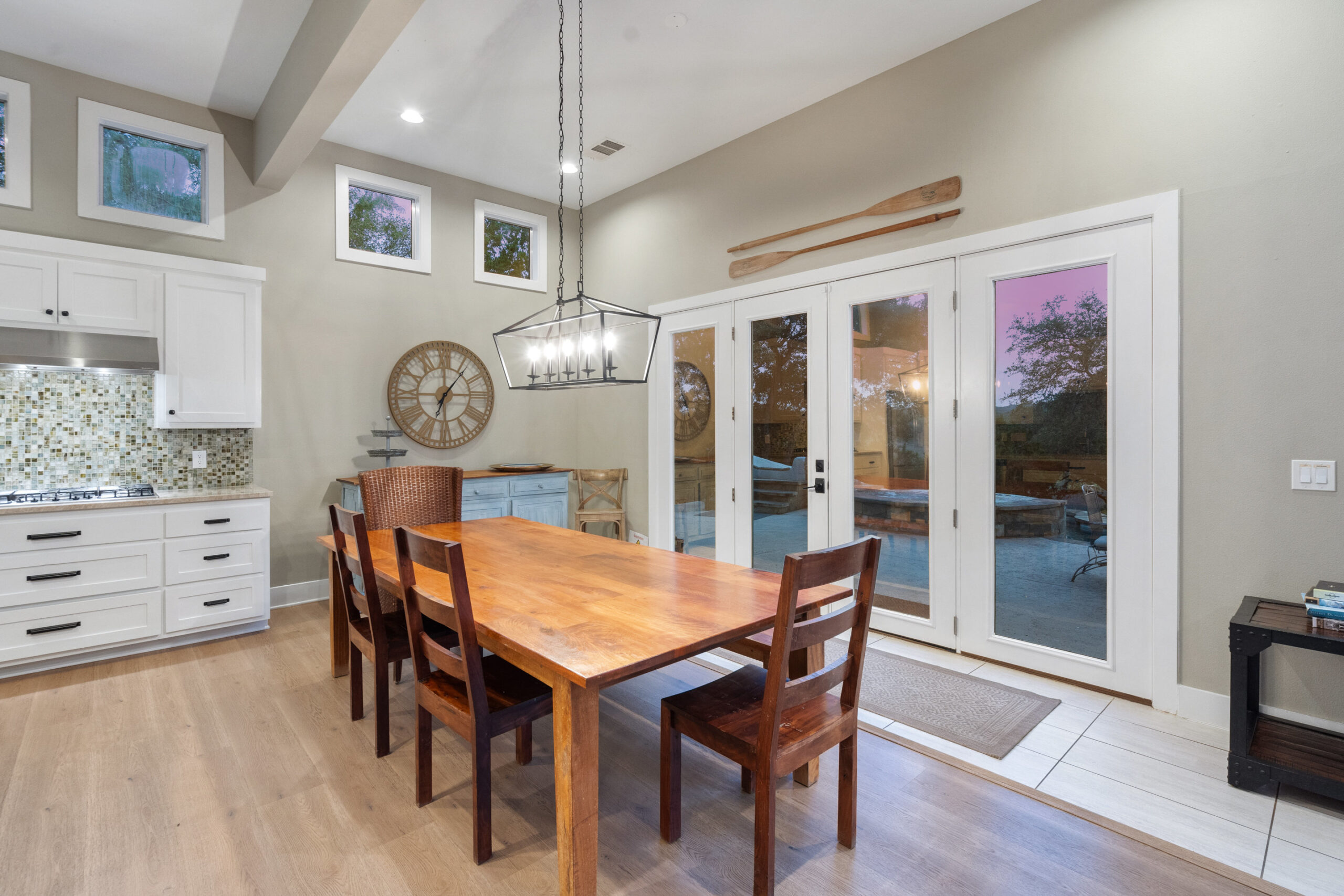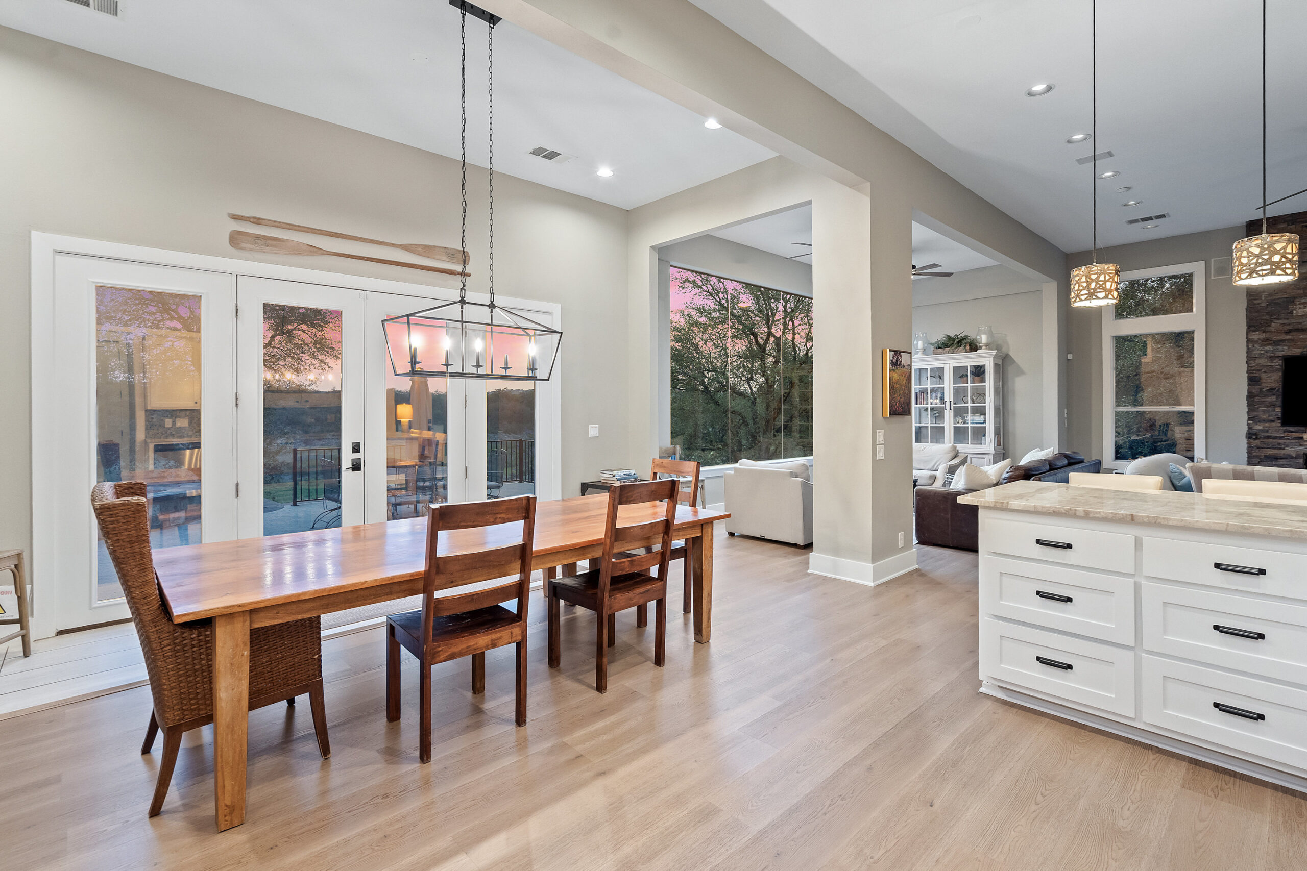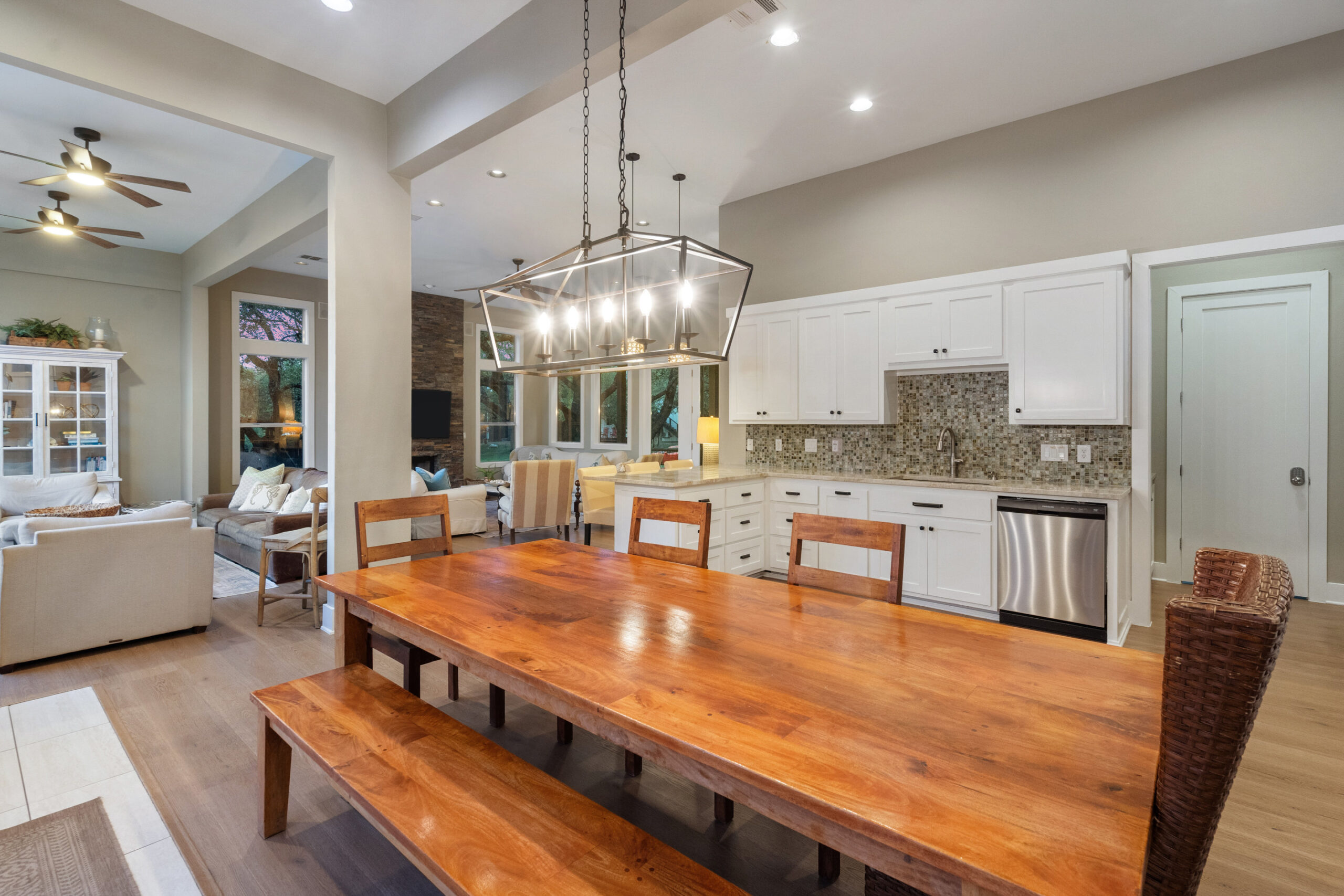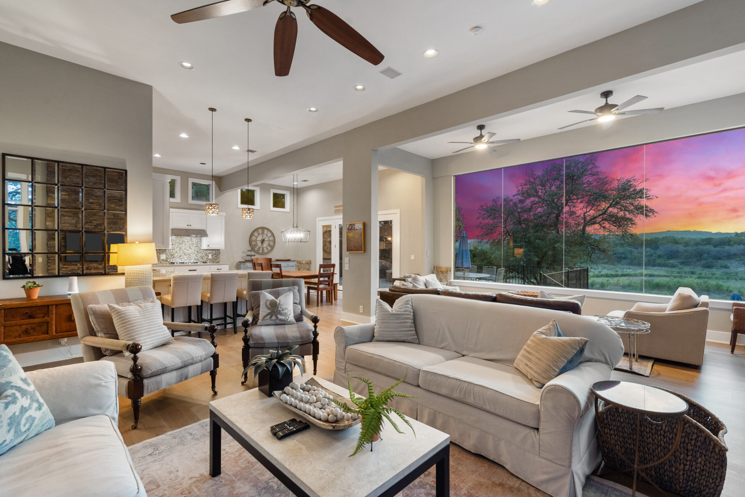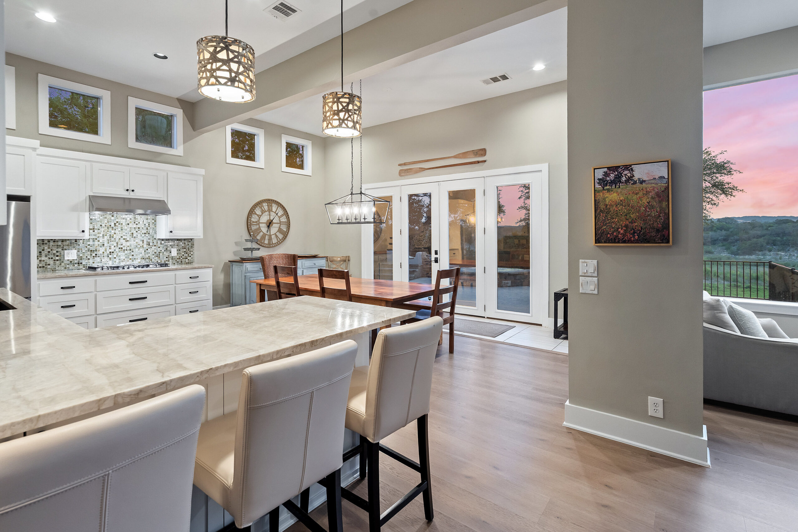 Welcome home to gated waterfront living at Pedernales Bend. The locale is the famous Texas Hill Country where relaxed lake lifestyles are celebrated. Perched over the Pedernales River on an open 1.669 acre lot, this property takes full advantage of its locale. Start your visit at the wide rollaway gate to find a sweeping tree canopy shading the circular drive at the main house. Inside you will find 2,540+/-sq.ft. with an open floor plan, a fireplace, 2 living rooms, dining, and kitchen. Also on this level is the bunk room with loft, a full bath plus the laundry room. Upstairs is 3 bedrooms and 2 baths plus an expansive covered balcony to soak up the sunset views. Relax and play at the pool featuring a spa and custom water slide. Enjoy your evenings around the firepit and gaze at the stars. Continue down the staircase to the boat dock with trapeze swing, storage, boat life and double jet ski lift for days of fun in the sun on Lake Travis. The community boat ramp is just to the north of the property near the RV storage with hookups that is outside the fence but still on the property. Additionally, the 2 story guest house offers 709+/-sq.ft. with 3 beds, 2 baths and a living room. A large portion of the yard is open for enjoying disc golf, tree swing and summer games. Currently used as an Airbnb, this income producing property it the perfect setting for friends and family to get together to make memories for a lifetime.