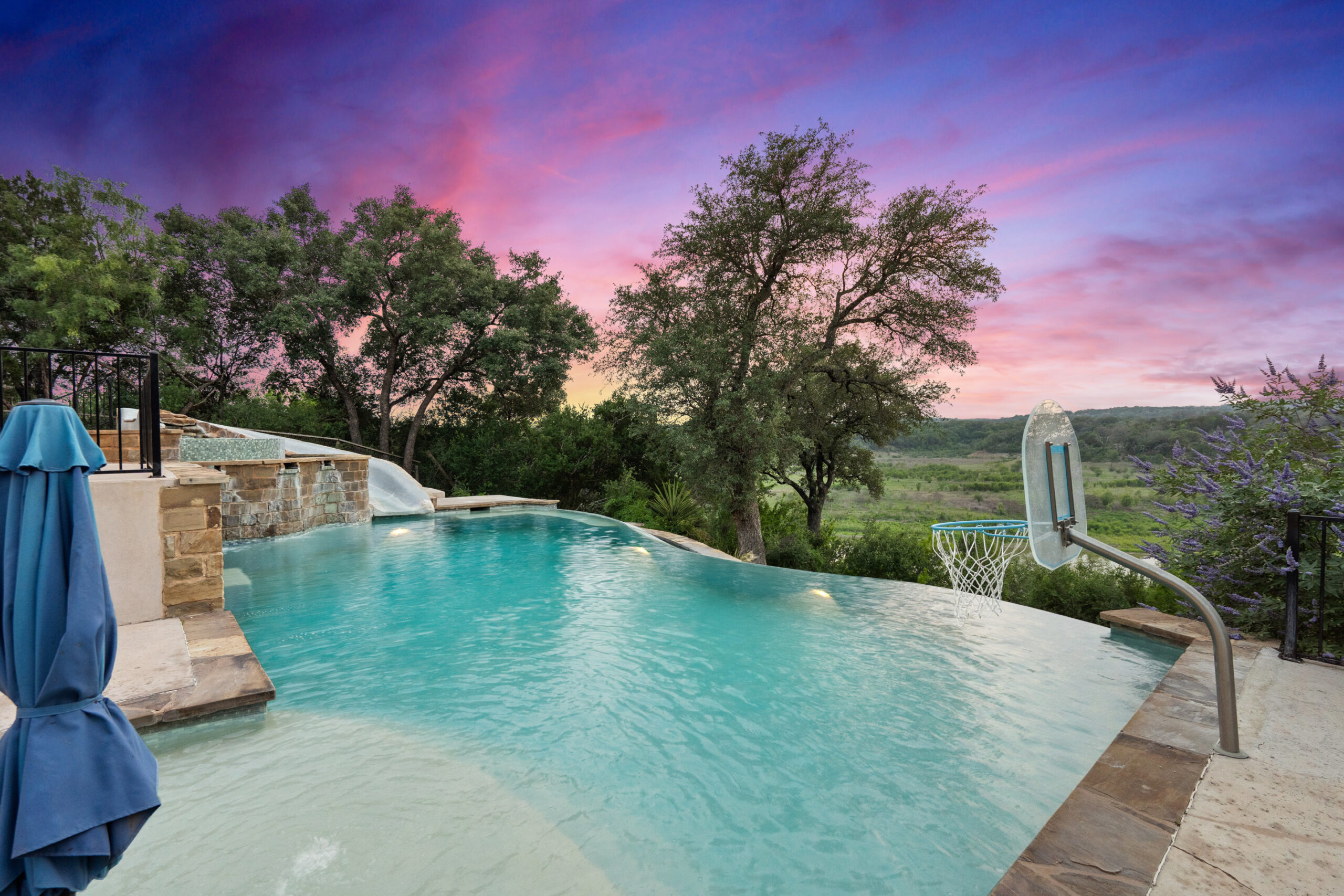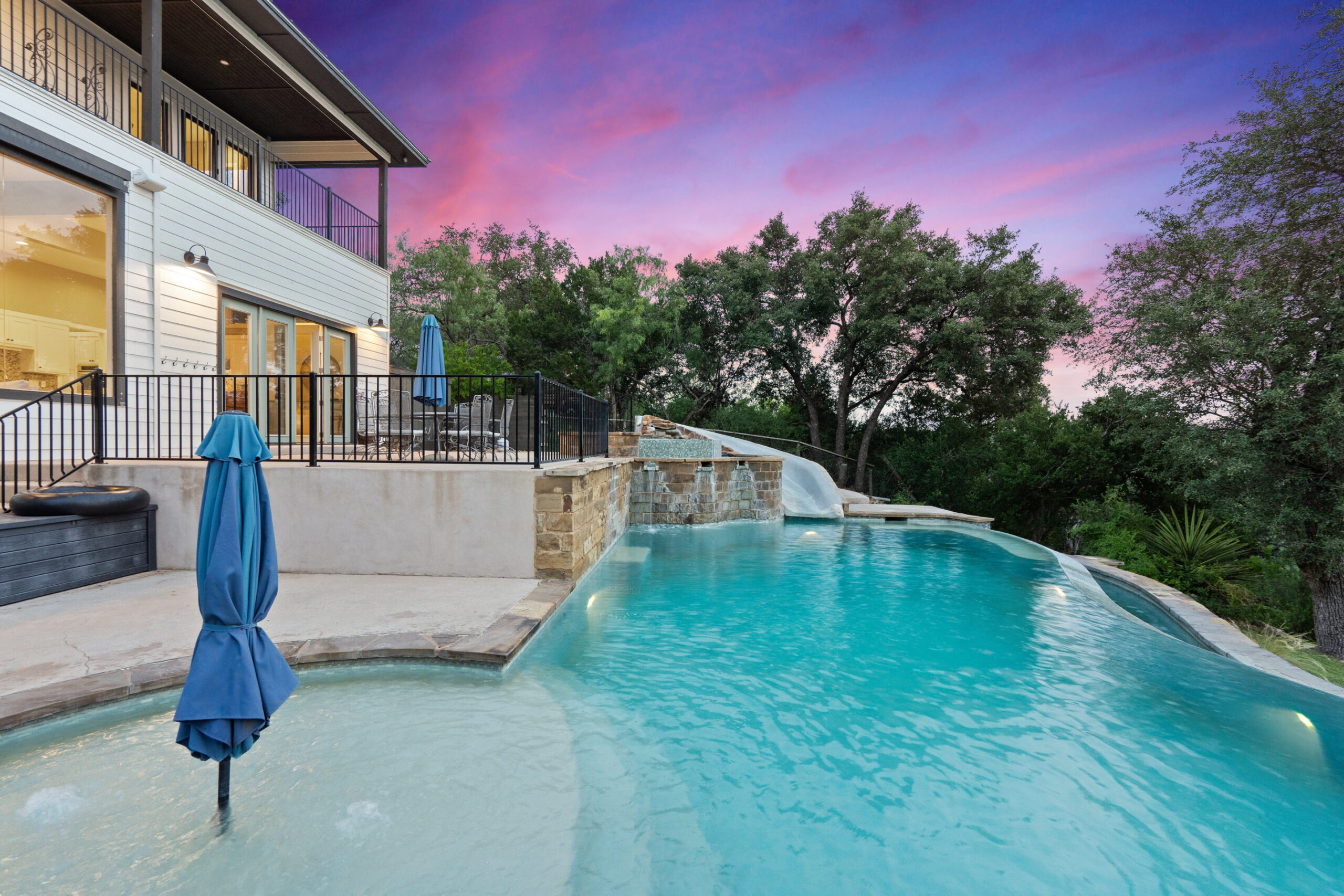 Pool, spa, slide