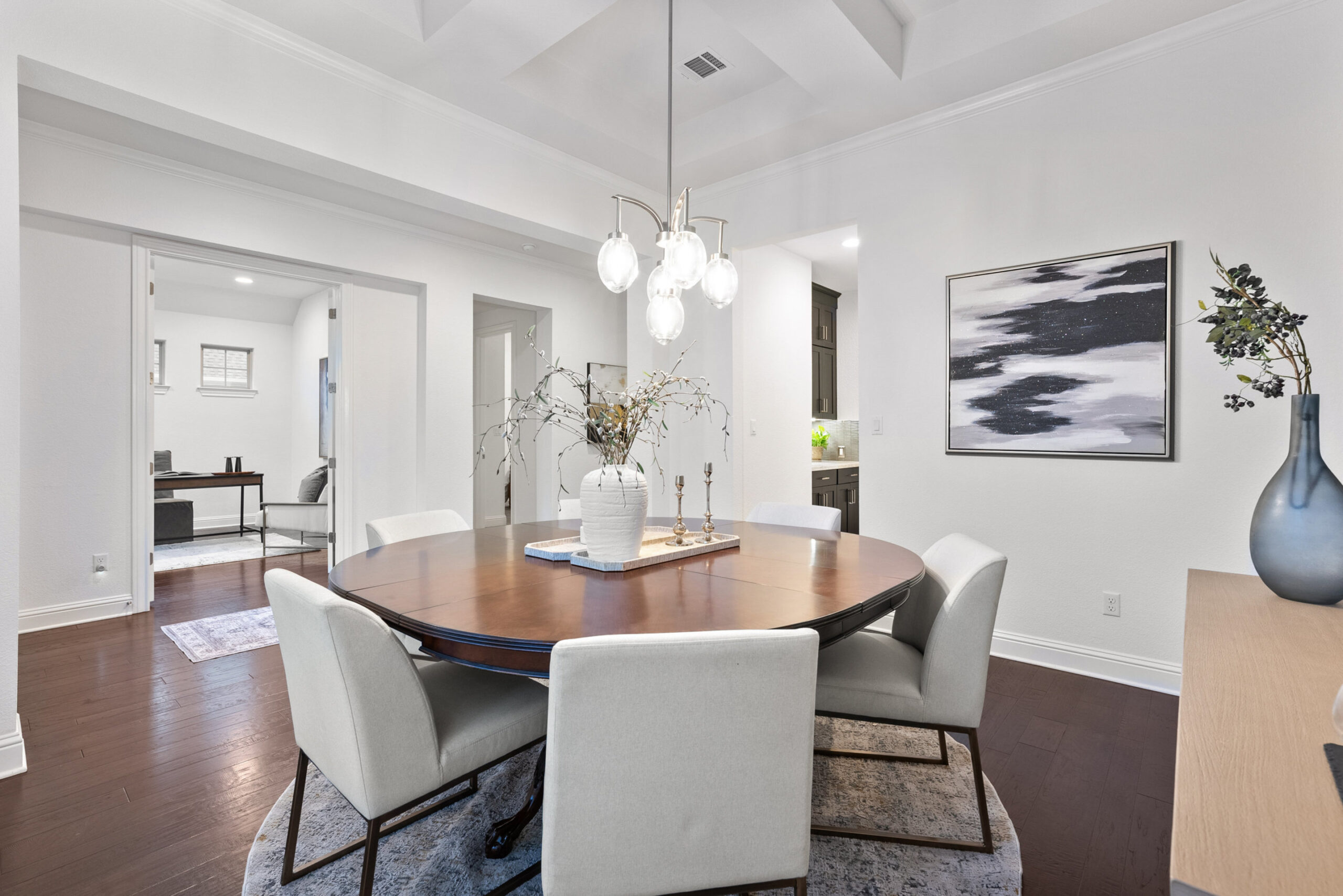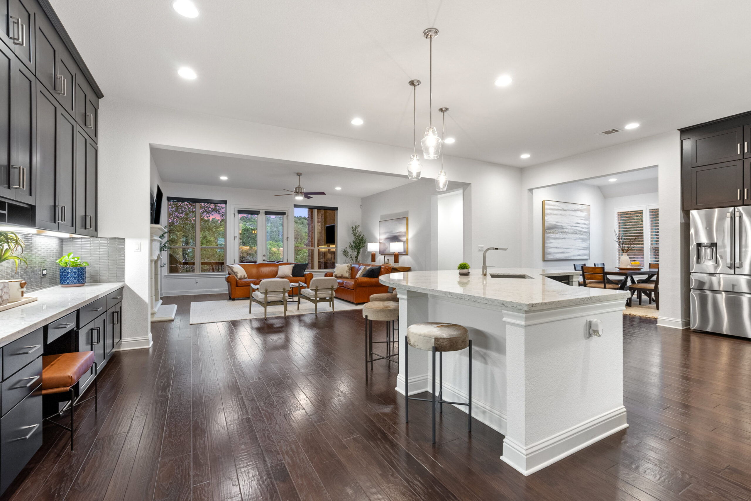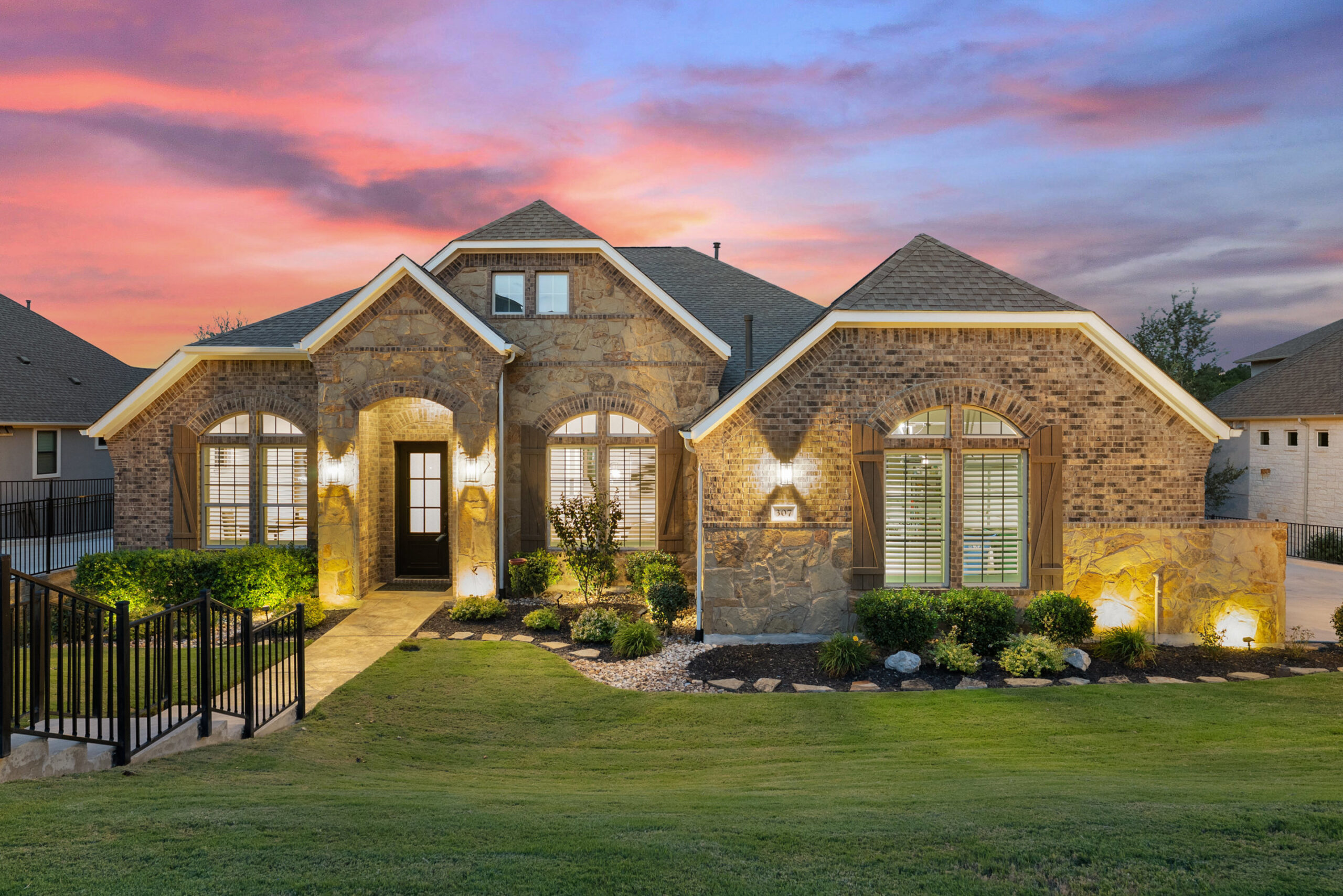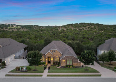 Welcome home to tranquil hill country living at The Estates of Flintrock. This gorgeous 3,248+/-sq.ft., 4 bed, 3.5 bath home is the Lorraine 1 story plan from Ashton Woods. Once you step inside you will find why this plan is so popular with its open main living areas and centralized kitchen – the true heart of the home. Working from home is so comfortable in the custom study. The elegant dining room and butler pantry are ready for the upcoming holiday parties. Gather everyone around the huge center island in the kitchen, take in a movie in the media room or cozy up by the fireplace in the living room. At the back of the home is the spacious primary suite with private/wooded views, a wonderful soaking tub, walk in shower and an impressive closet. All the bedrooms are very accommodating for family and friends. Relax out back on the covered patio with views to make you feel like you’re in the treetops. A spacious, wrap around yard is ready for a pool next to a wet weather creek. Come see why this small neighborhood is so cherished.