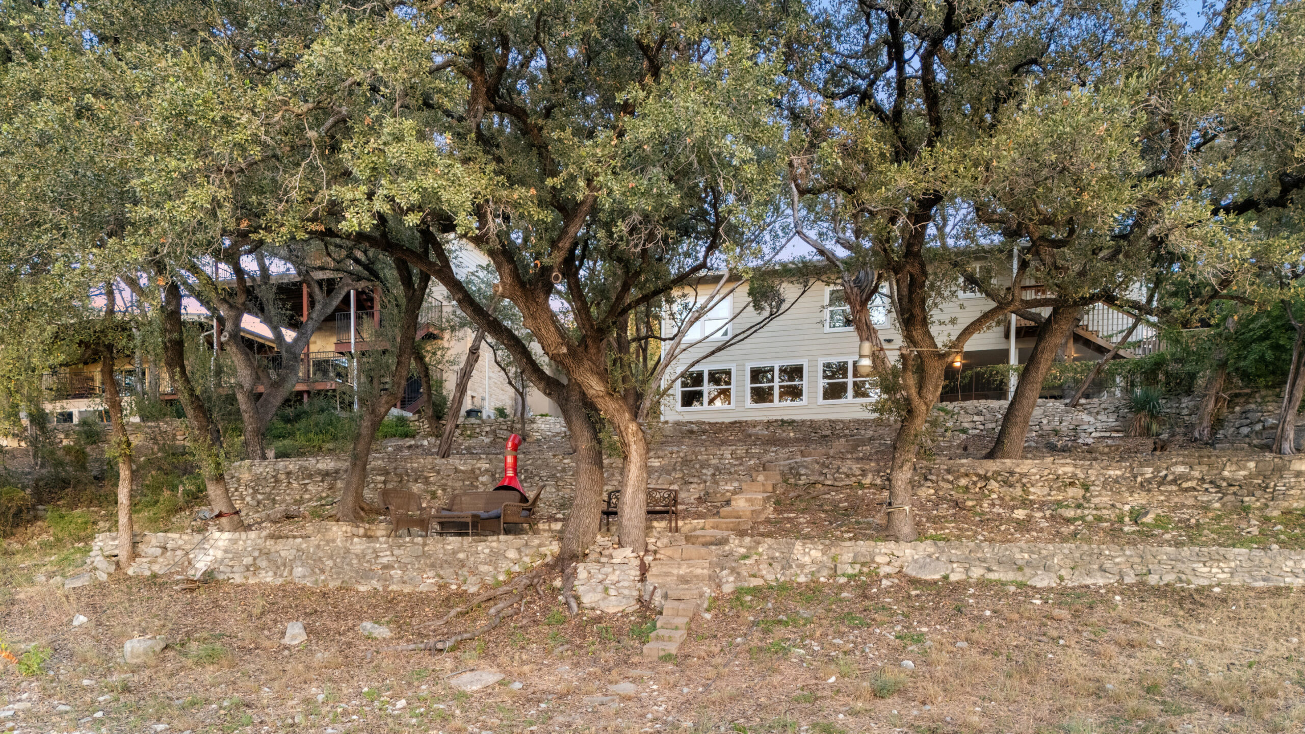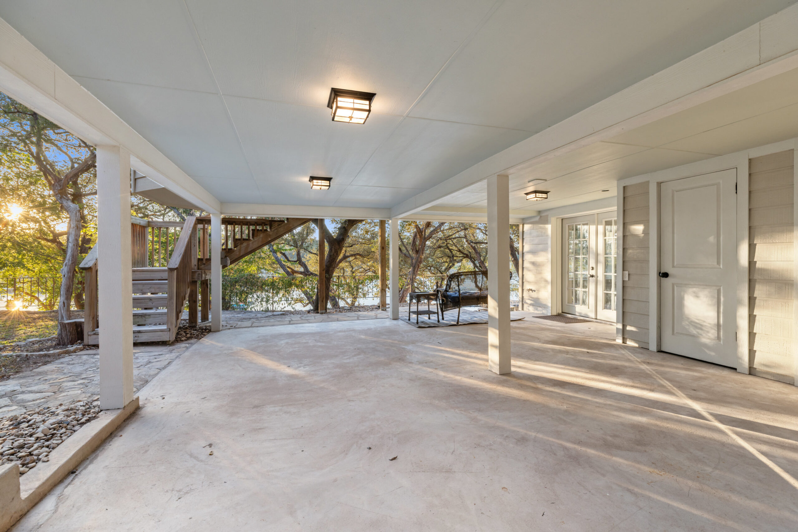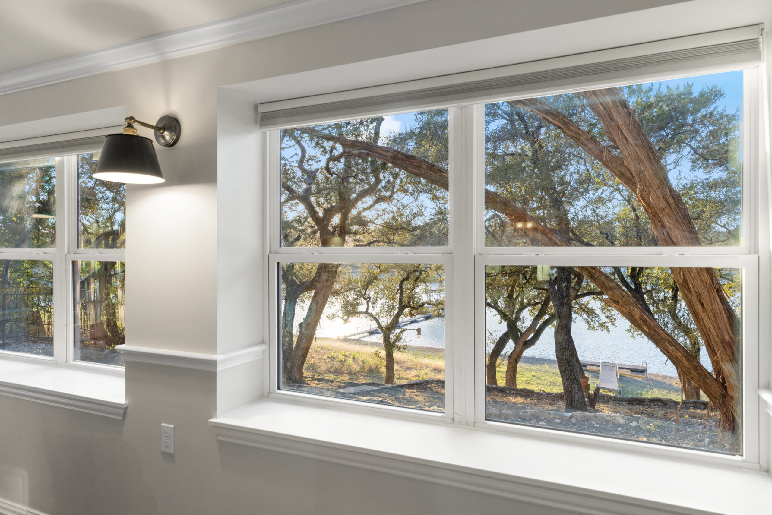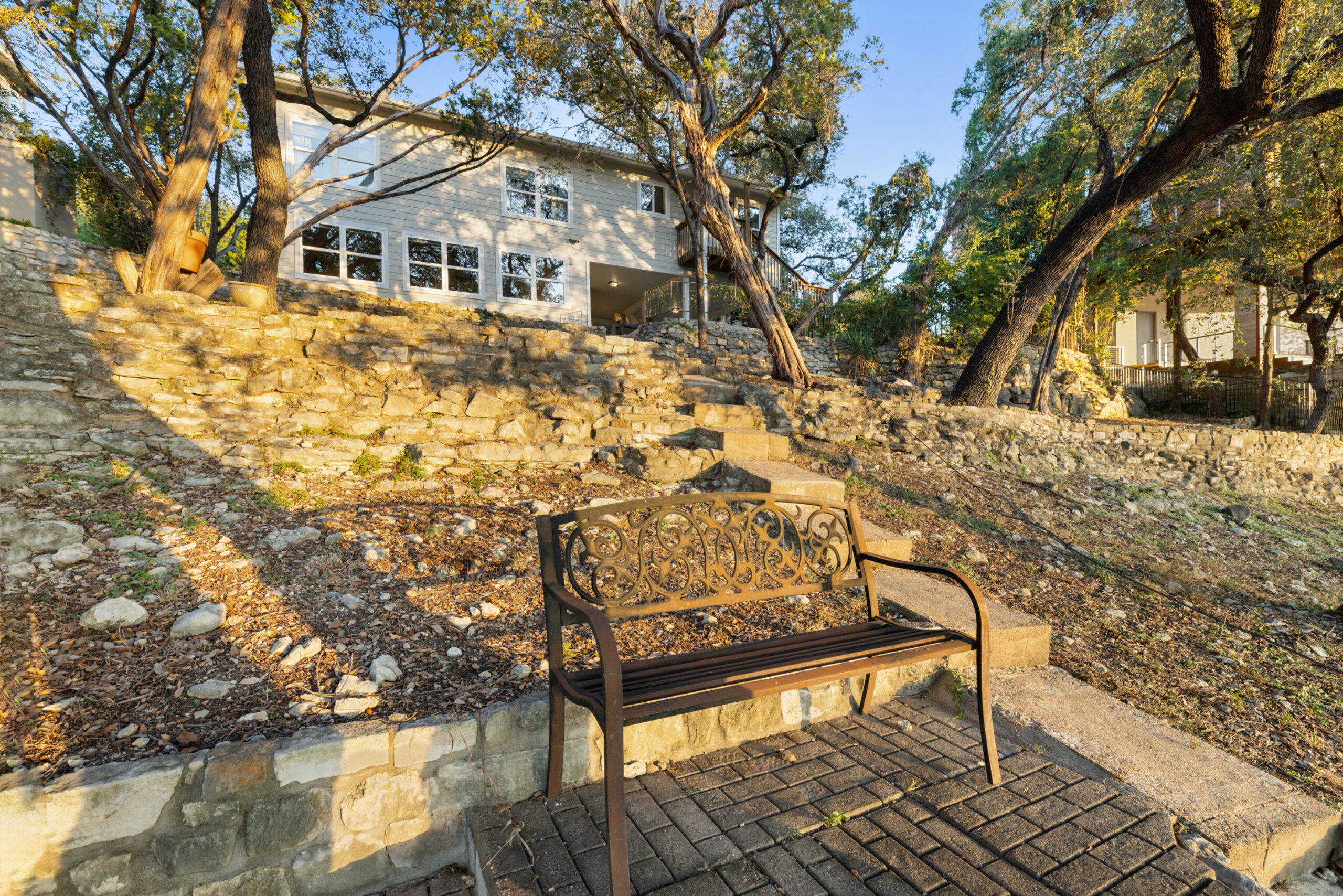 Welcome home to waterfront living on Lake Travis. This beautiful 1,974+/-sq.ft., 3 bed, 3 bath home is nestled on a wooded lot across the cove from Lakeway City Park. The main living is an open kitchen, dining and living room awash in natural light from an abundance of windows. The kitchen boasts Silestone counters, stainless appliances, electric cooktop, and gorgeous cabinets. A tranquil primary suite offers beamed ceiling, desk nook, walk in closet and a serene bath with walk in shower. Two spacious secondary bedrooms share the hall bath with a tub/shower combo. The downstairs is a massive second living room ready to be a game room, media room, hobby room or study with its own full bath. There’s lots of storage available in the oversized laundry room, walk in closet under the stairs plus 3 closets on the covered patio. The .30 acre lot provides plenty of room for a pool, spa or anything else you would like to design. Enjoy exceptional views of the lake under the shaded tree canopy and shoreline. This is a lifestyle you do not want to miss. This property can also be a short term rental.
