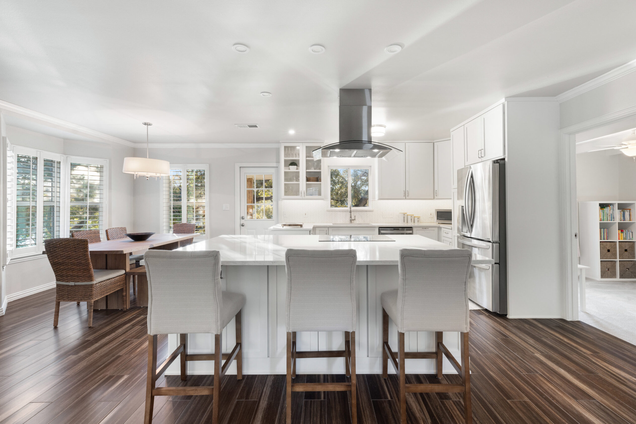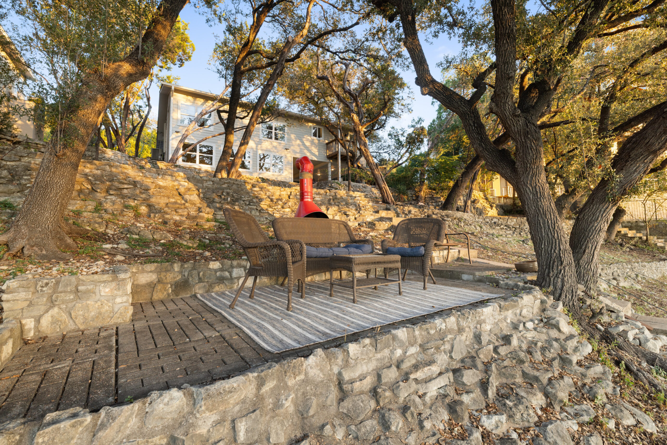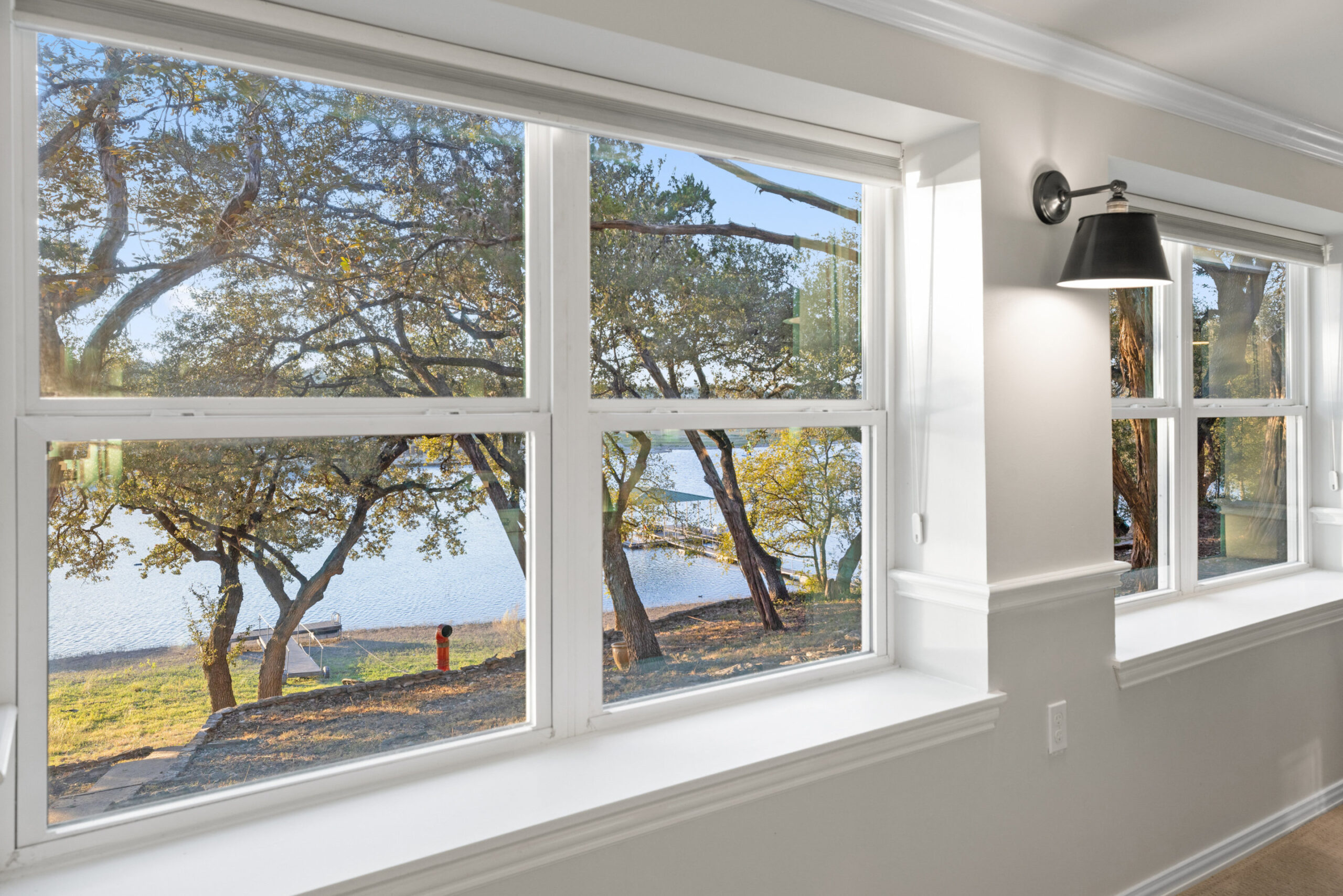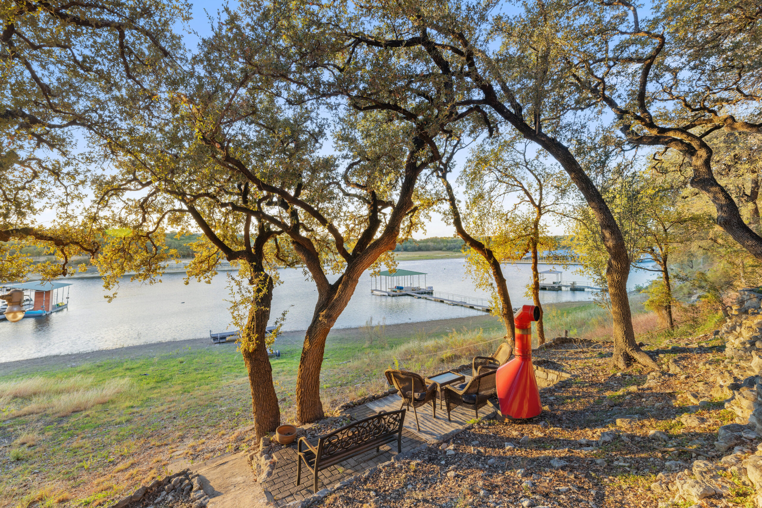 Welcome home to waterfront living on Lake Travis. This beautiful 1,974+/-sq.ft., 3 bed, 3 bath home is nestled on a wooded lot across the cove from Lakeway City Park. The main living is an open kitchen, dining and living room awash in natural light from an abundance of windows. The kitchen boasts Silestone counters, stainless appliances, electric cooktop, and gorgeous cabinets. A tranquil primary suite offers beamed ceiling, desk nook, walk in closet and a serene bath with walk in shower. Two spacious secondary bedrooms share the hall bath with a tub/shower combo. The downstairs is a massive second living room ready to be a game room, media room, hobby room or study with its own full bath. There’s lots of storage available in the oversized laundry room, walk in closet under the stairs plus 3 closets on the covered patio. The .30 acre lot provides plenty of room for a pool, spa or anything else you would like to design. Enjoy exceptional views of the lake under the shaded tree canopy and shoreline. This is a lifestyle you do not want to miss. This property can also be a short term rental.