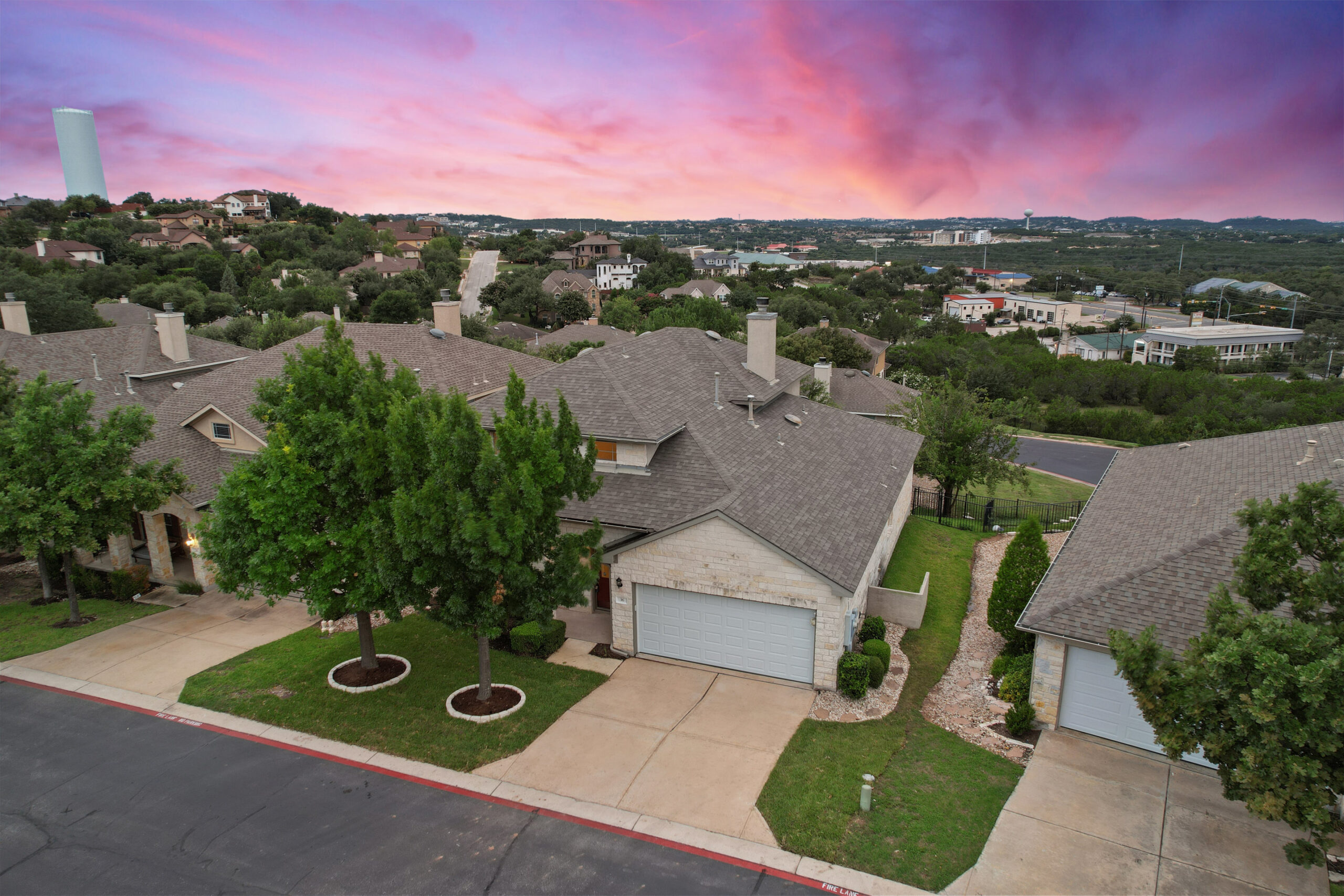 Welcome home to the Courtyard at The Preserve in the Lakeway area near Lake Travis. Beautiful two story with open floor plan and covered patios for indoor/outdoor living in the Lakeway area. Attractive stone exterior and landscaped yards offer a wonderful welcome. Soaring 2 story foyer at formal dining room. Carpet and tile floors in main areas, carpeted bedrooms. Spacious kitchen with breakfast room, eat at center island, granite counters, all appliances plus large pantry and separate laundry room. Flexible living room with corner fireplace overlooks the back yard. Lots of windows throughout offering plenty of natural light in each room. Primary bedroom at the back for added privacy boasts walk in shower, soaking tub, dual vanities, private commode and walk in closet. Upstairs, two additional bedrooms share a full bath at the large second living room with built in desk area. The two car garage provides additional storage room. Relax on the back patio overlooking a private, fenced in yard. A standalone home but condo land where hoa takes care of front yard. Exemplary Lake Travis ISD, lots of area amenities like golf, tennis, marinas in the Lakeway area plus Hill Country Galleria, Lakeway Medical Center, and Whole Foods. Come enjoy living near the lake in the famous Texas hill country. Short term rental allowed with a minimum term of 30 days.