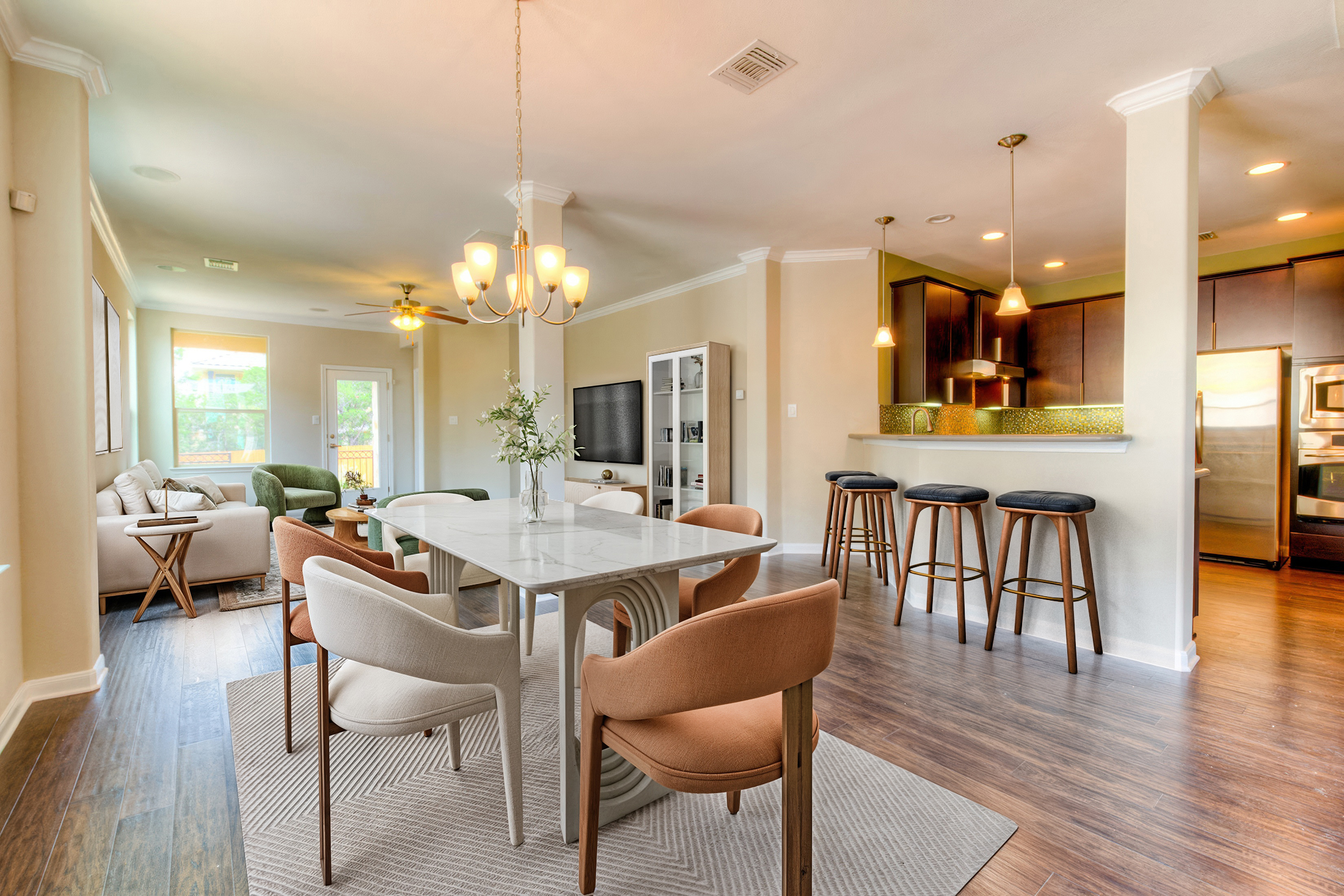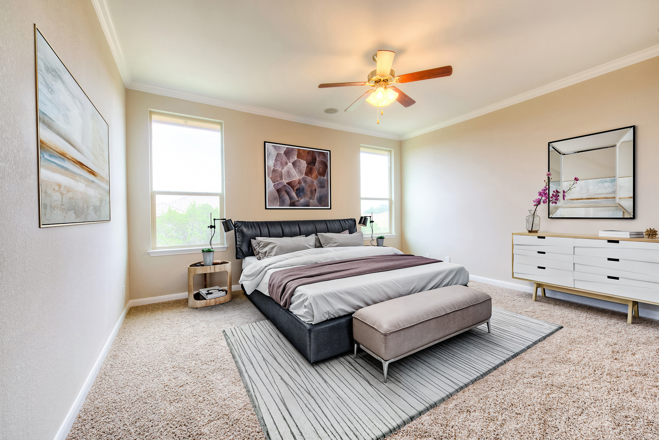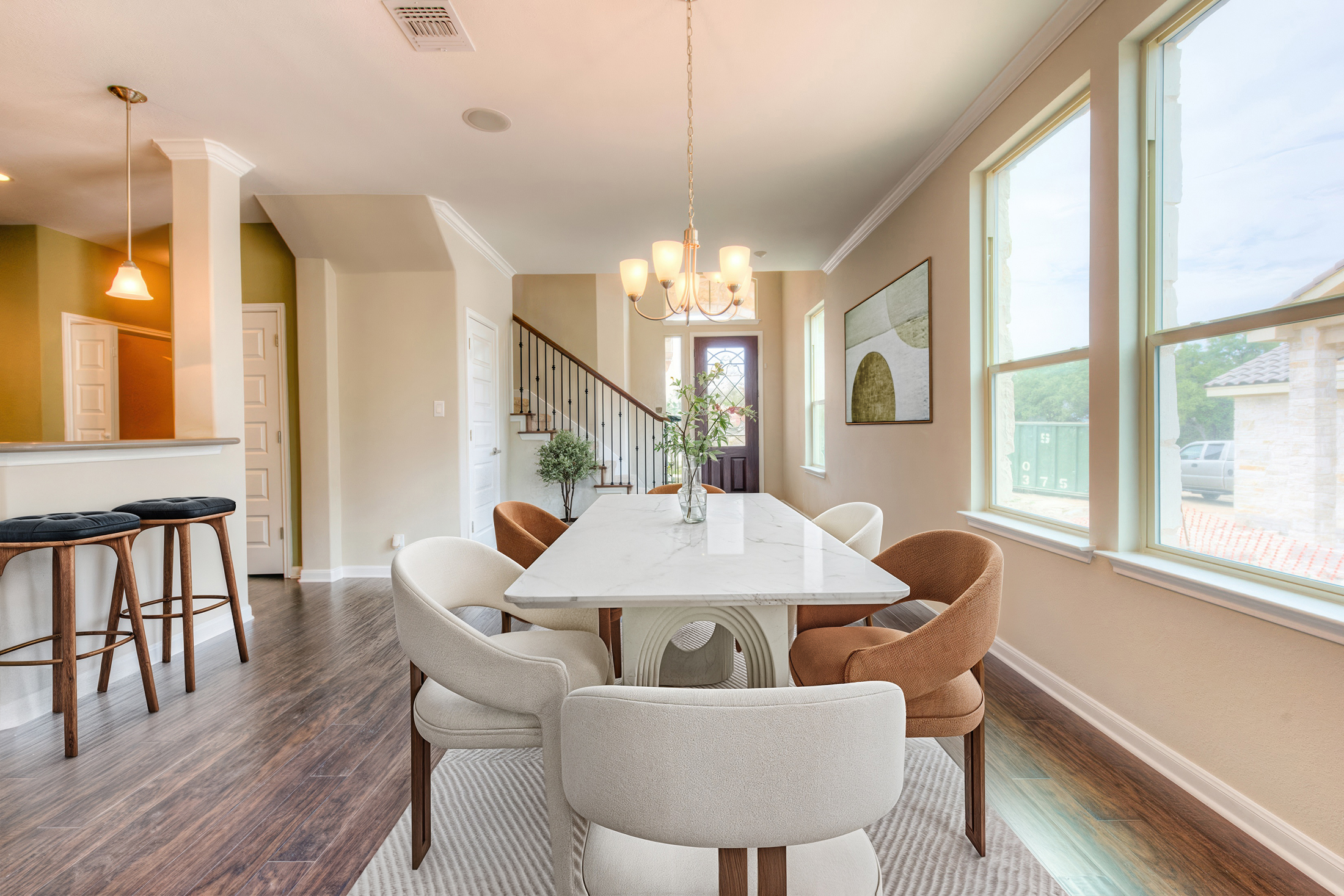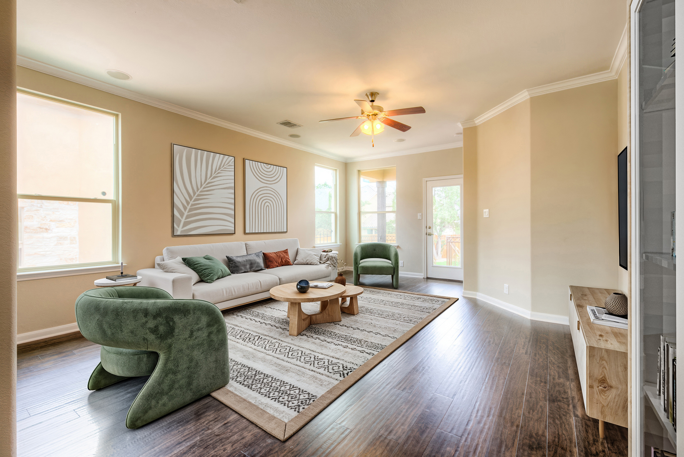 Great find in Lake Travis ISD. Beautiful and well maintained 2 story attached condo built in 2014. Stone and stucco exterior with tile roof. Custom landscaped yards with sprinkler system. 2 car garage and covered front porch entry. Wood, carpet & tile flooring. Open living, dining and kitchen with lots of natural light plus crown molding. The kitchen boasts granite counters, stainless steel appliances including gas cooktop and refrigerator as well as an eat at breakfast bar. The primary suite is at the back of condo for privacy. Primary bath with granite counters, dual vanities, walk in shower plus a big walk in closet. A half bath and a spacious laundry room round out the first floor. Large game room with skylight, 2 bedrooms plus a hall bath and 2nd primary suite upstairs. Covered back patio, fenced back yard with mature trees. Close to everything in Lakeway as well as Lake Travis.