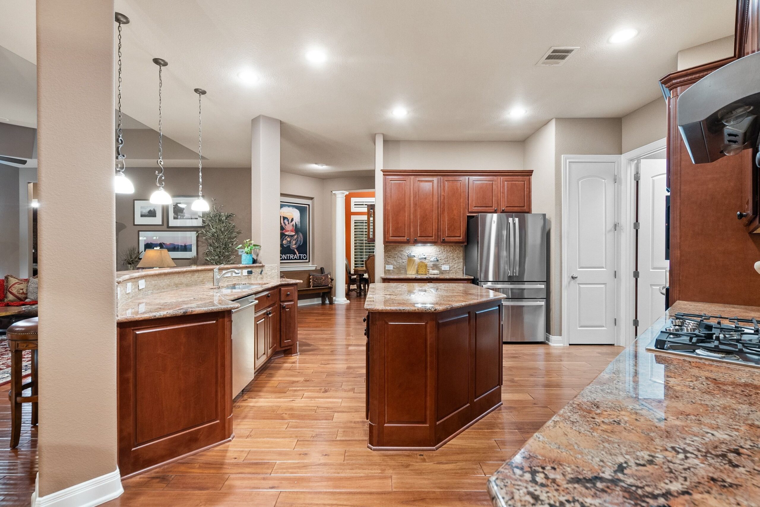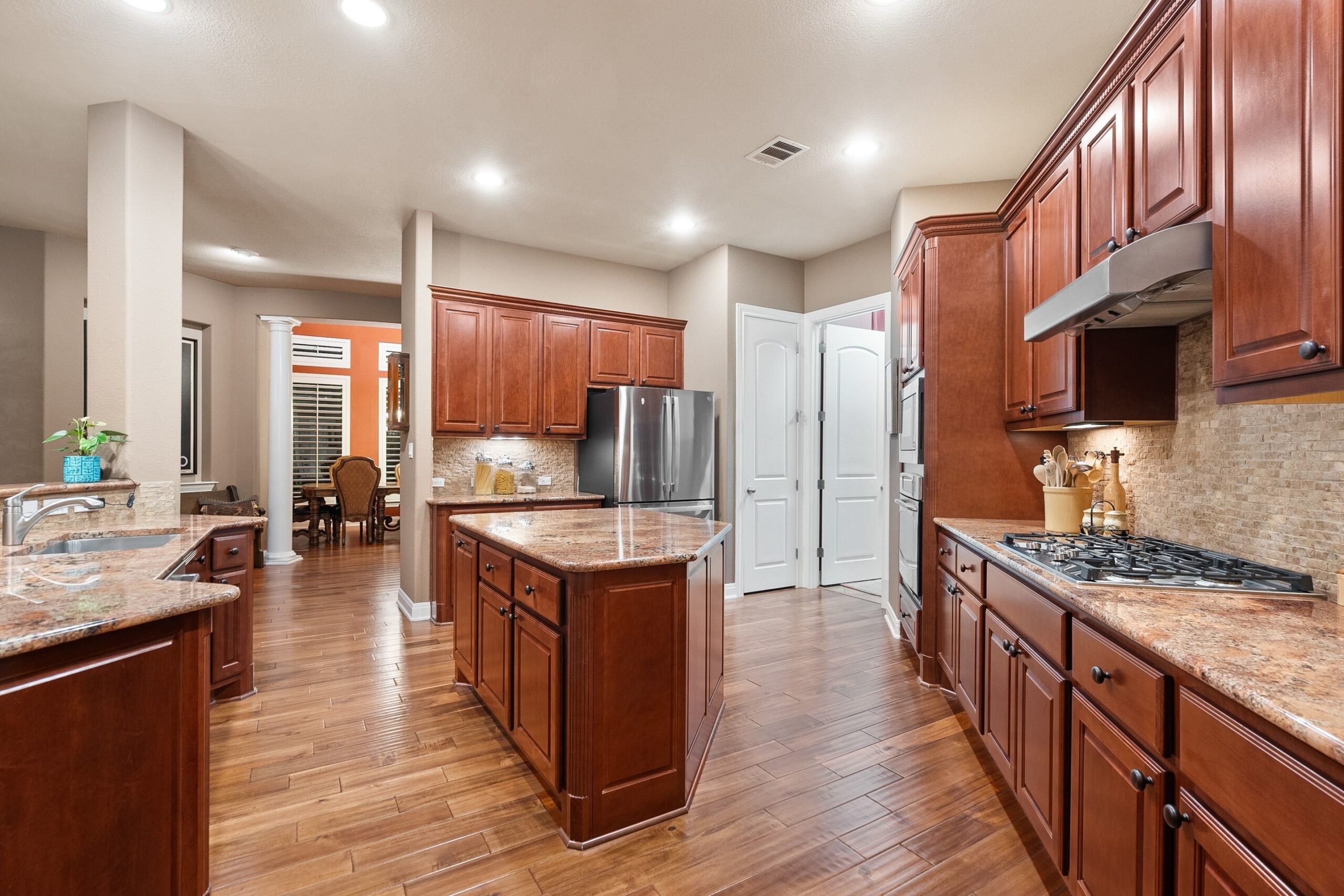 Welcome home to Falconhead West, nestled in the heart of the renowned Texas Hill Country, where scenic beauty meets everyday convenience. Built in 2009 by Taylor Morrison, this stunning single-story residence offers approximately 3,163 square feet of thoughtfully designed living space, blending timeless style with modern comfort. From the moment you step inside, you’re greeted by an inviting foyer and a dedicated home office—perfect for today’s flexible lifestyle. The expansive open floor plan seamlessly connects the main living areas, creating an ideal setting for both entertaining and relaxed daily living. At the center of the home, the chef-inspired kitchen features granite countertops, stainless steel appliances, a generous center island, and a spacious walk-in pantry. It flows effortlessly into the breakfast area, formal dining space, and a warm, welcoming living room anchored by a cozy fireplace. The private primary suite is tucked away at the rear of the home, offering a peaceful retreat with a spa-like bathroom that includes dual vanities, a soaking tub, a walk-in shower, and an oversized walk-in closet. Three additional bedrooms provide comfortable accommodations for family or guests, each with ample space and natural light. Designed with both function and lifestyle in mind, the home also includes a three-car garage and abundant storage throughout. Step outside to enjoy true indoor-outdoor living with two patios—one overlooking a serene, wooded backdrop within the fenced backyard, creating the perfect space to unwind or entertain. Ideally located, residents enjoy easy access to neighborhood amenities including parks with covered playgrounds, miles of hike and bike trails, and nearby schools. Just minutes away, you’ll find premier shopping, dining, golf, tennis, and the recreational beauty of Lake Travis. With downtown Austin only 17 miles away, Falconhead West offers the perfect balance of tranquility and accessibility. Discover why this highly sought-after Bee Cave community continues to capture the hearts of those seeking an exceptional Hill Country lifestyle.