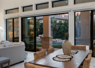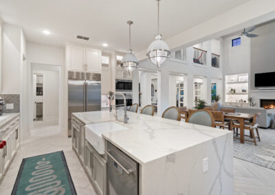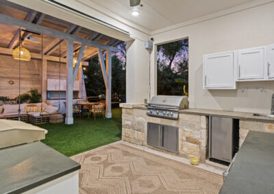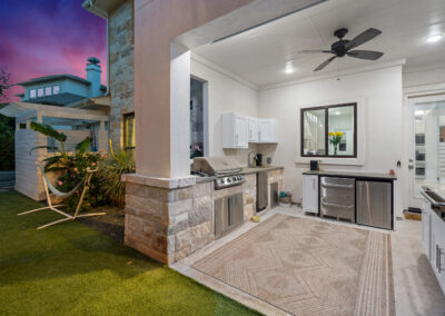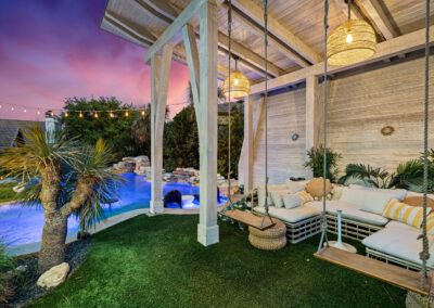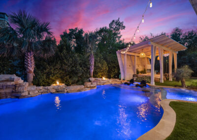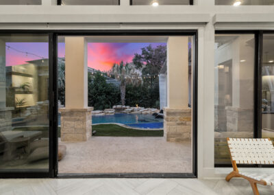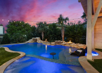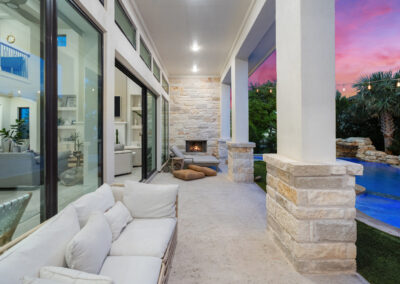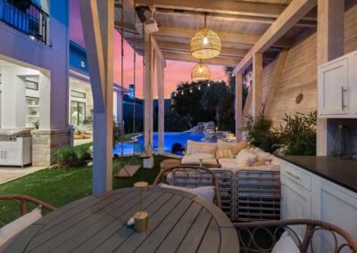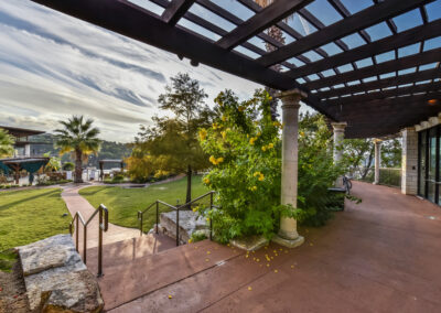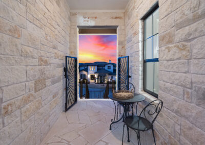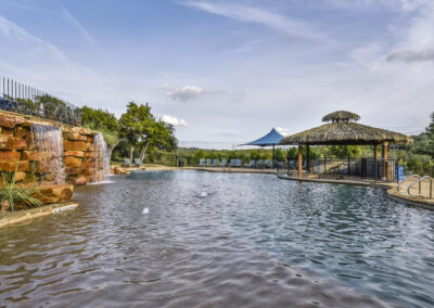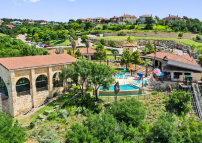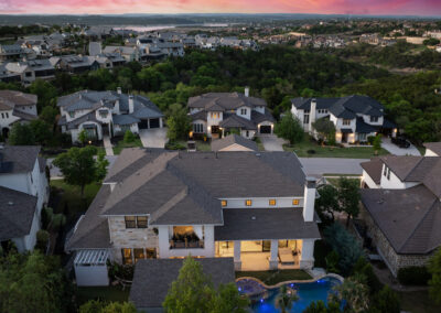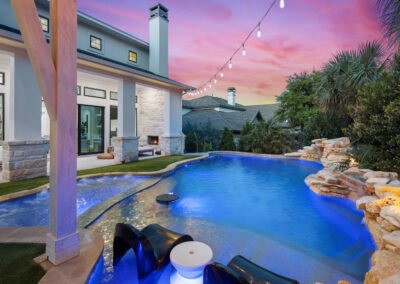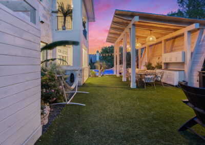 Resort style living has never looked so good – welcome to 505 Woodside Terrace in Rough Hollow on Lake Travis. Start your tour of this amazing home at the gated courtyard entry featuring a beautiful stone patio with fireplace and a covered entry to a one bed, one bath casita. The heart of the home is a 2 story open plan with the living room fireplace to your left then the dining and kitchen to your right. Sliding glass doors provide indoor/outdoor living to enjoy year round. The chef’s kitchen boasts a waterfall style center island, high end stainless steel appliances including gas range, wine frige and pass through window to the summer kitchen. An oversized study acts as a bonus room large enough for a pool table next to the built in desk and dual French door entry. A gorgeous primary suite offers a spacious glass walled walk in shower, soaking tub, expansive dual vanities plus a massive walk in closet with two storage islands which is sure to be the cause of envy. Upstairs you will find a lofted game room with wet bar, custom home theater plus 3 beds, two and half baths as well as a chic covered balcony. No need to worry about storage when you have a 2 story 3 car garage, walk in attic, laundry with sink, mud room plus several closets. We saved the best for last – experience a backyard like no other: spa and pool with waterfalls, fire bowls and tanning ledge, stylish cabana with swings, turf yard, fire pit and even a half bath with shower and changing room. This home has it all.