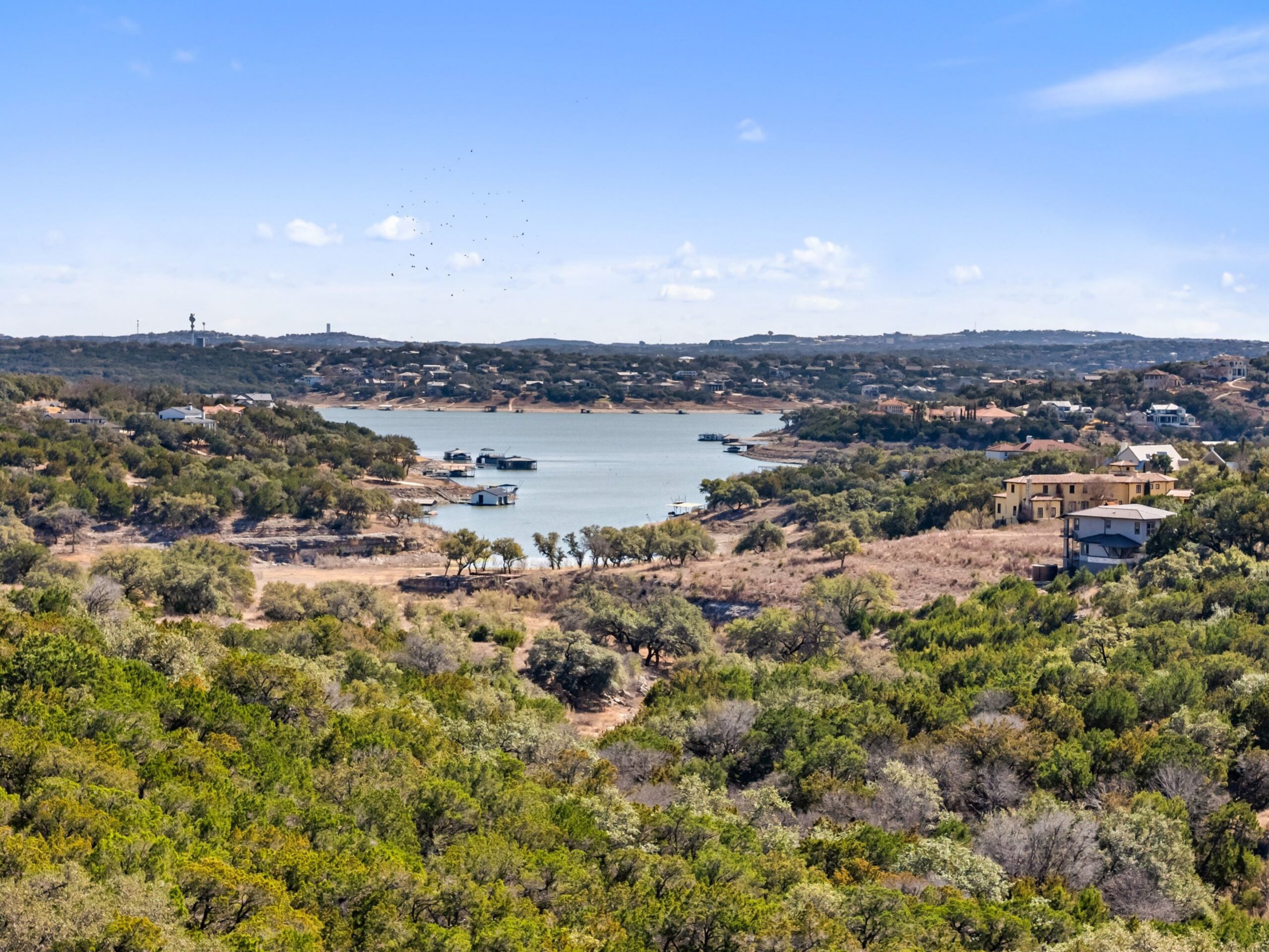 Welcome home to Angel Bay – an exclusive gated waterfront community in Spicewood Texas on Lake Travis. This amazing 4.77 acre corner lot is ready for you to design your dream home. The lot gently cascades under the canopies of huge oak trees with an opening for breathtaking lake views. Electric and cable are already onsite. Septic, propane and well needed. The community park is just 3 minutes away located at 302 Angel Song Cove which offers a clubhouse with restrooms, boat ramp plus you have a reserved boat slip #13 with HydroHoist boat lift at the gated private marina which costs $300 per quarter. The communities HOA fee is $1,350 and paid semi-annually. This area offers exceptional convenience on the lake with several waterfront restaurants nearby like The Lighthouse in Briarcliff, Canyon Grille at Rough Hollow, Captain Pete’s Boathouse at Point Venture, and The Sundancer Grill at Hurst Creek. Plus, the Pedernales Golf Course, Hill Country Galleria, Whole foods, Trader Joe’s, fine dining are all nearby in the exemplary Lake Travis ISD. It’s all here for you so stop dreaming and start building your lake lifestyle in the famous Texas hill country. *Home plans are attached and on listing website*